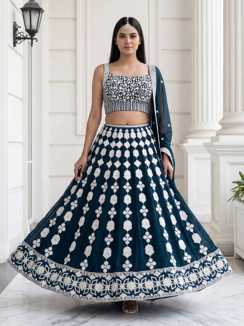 | Product Name | Green Thread Embroidered Georgette Party Lehenga Set Choli With Dupatta | |