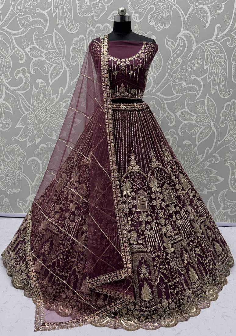 | Product Name | Wine Hand Work Net Bridal Lehenga Set Choli With Dupatta With Dupatta | |