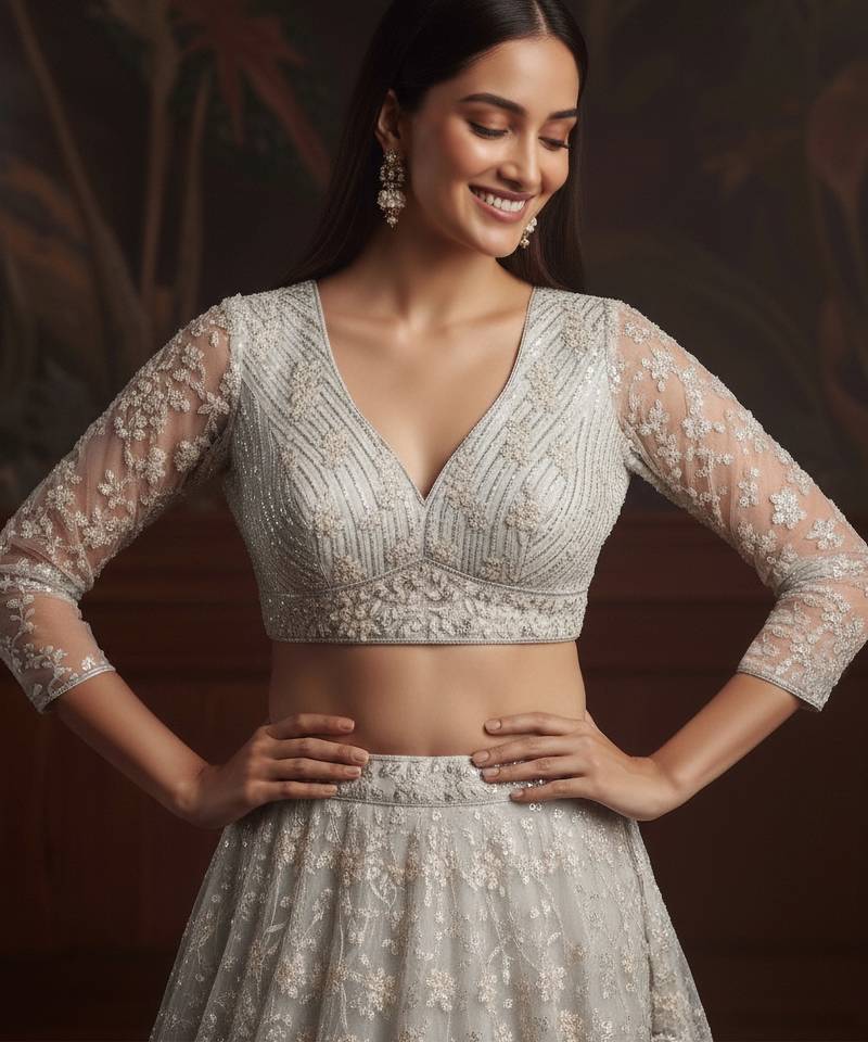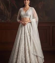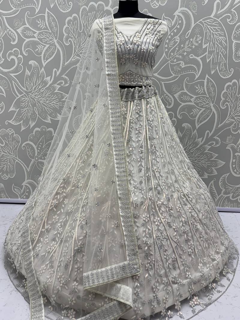 | Product Description | The White Lehenga Features A Luxurious Net Fabric Base Adorned With Fancy Embroidery, Dori Work, Sequins Studded Detailing, And Zircon Diamond Highlights. Its Shimmering Floral Patterns And Flowing Silhouette Create An Elegant, Premium Bridal Look.