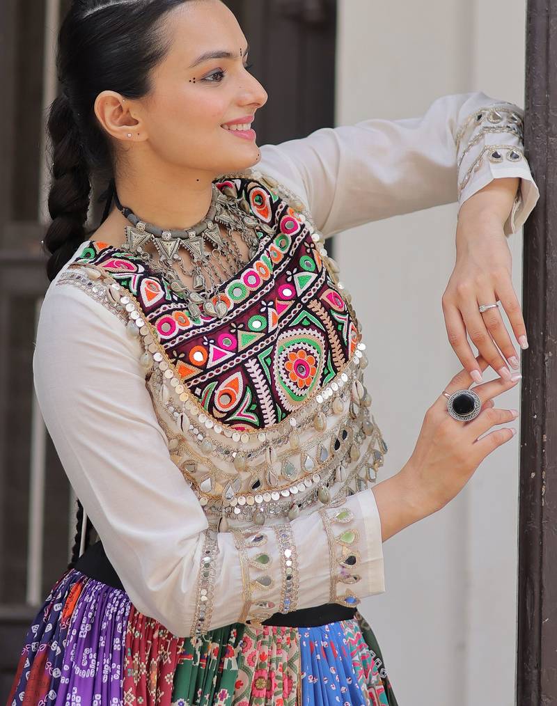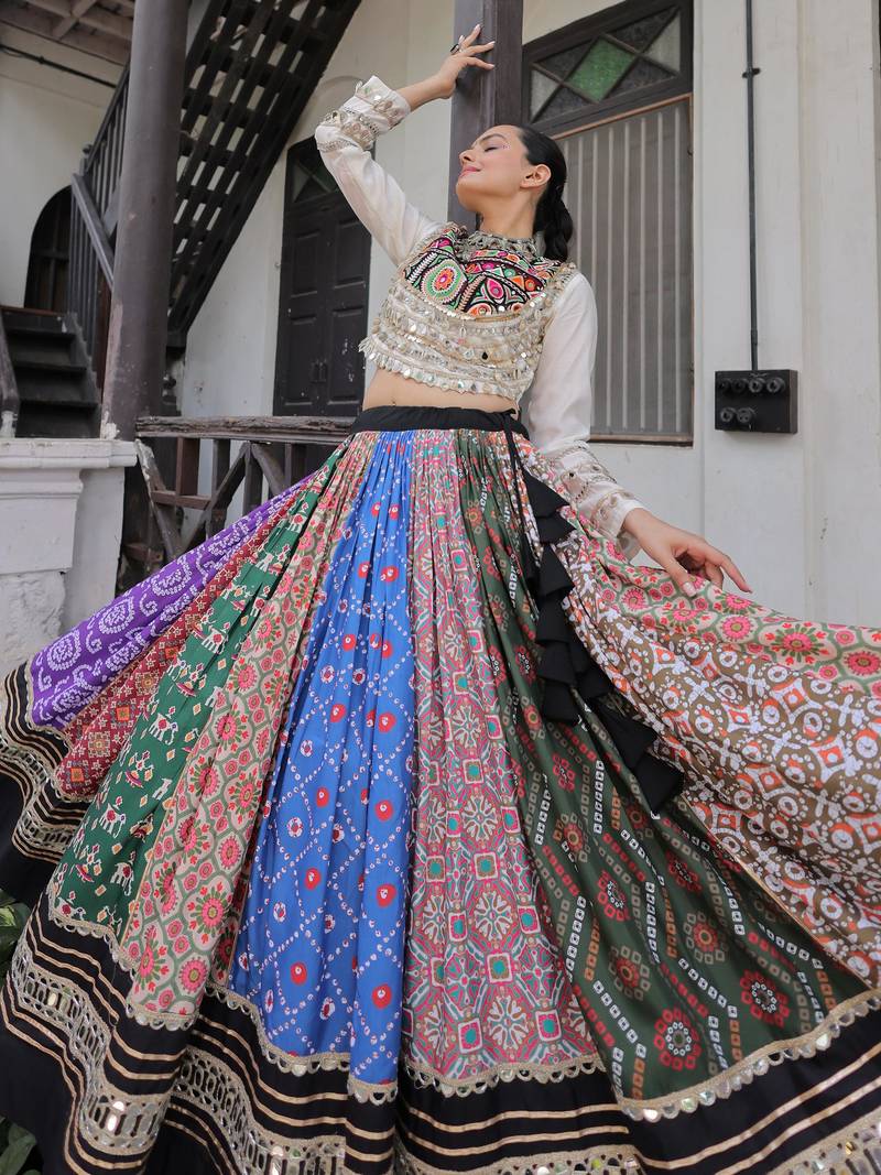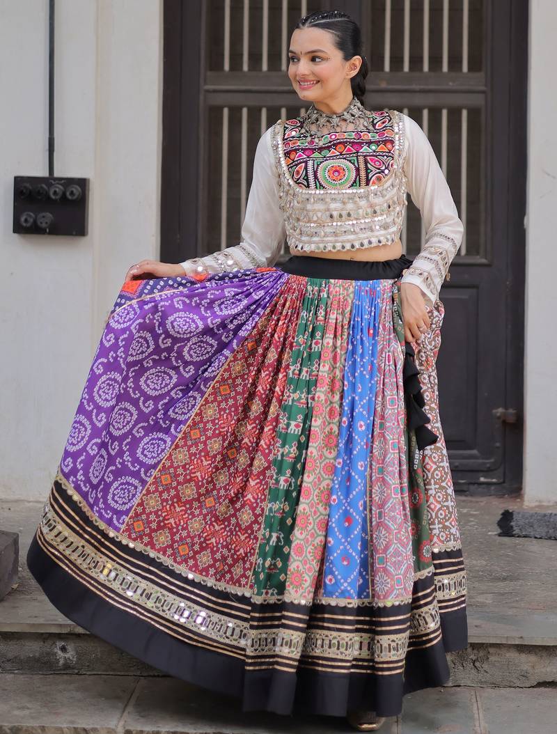 | Product Description | This Vibrant Lehenga Choli Is A Celebration Of Traditional Craftsmanship And Festive Spirit. The Blouse Features Intricate Mirror Work And Colorful Embroidery In Bright Shades Of Orange, Green, Pink, And Black, Creating A Bold And Striking Appeal.