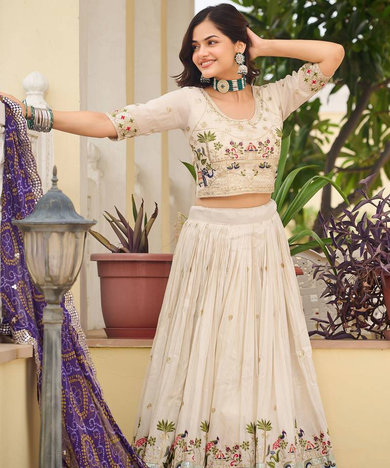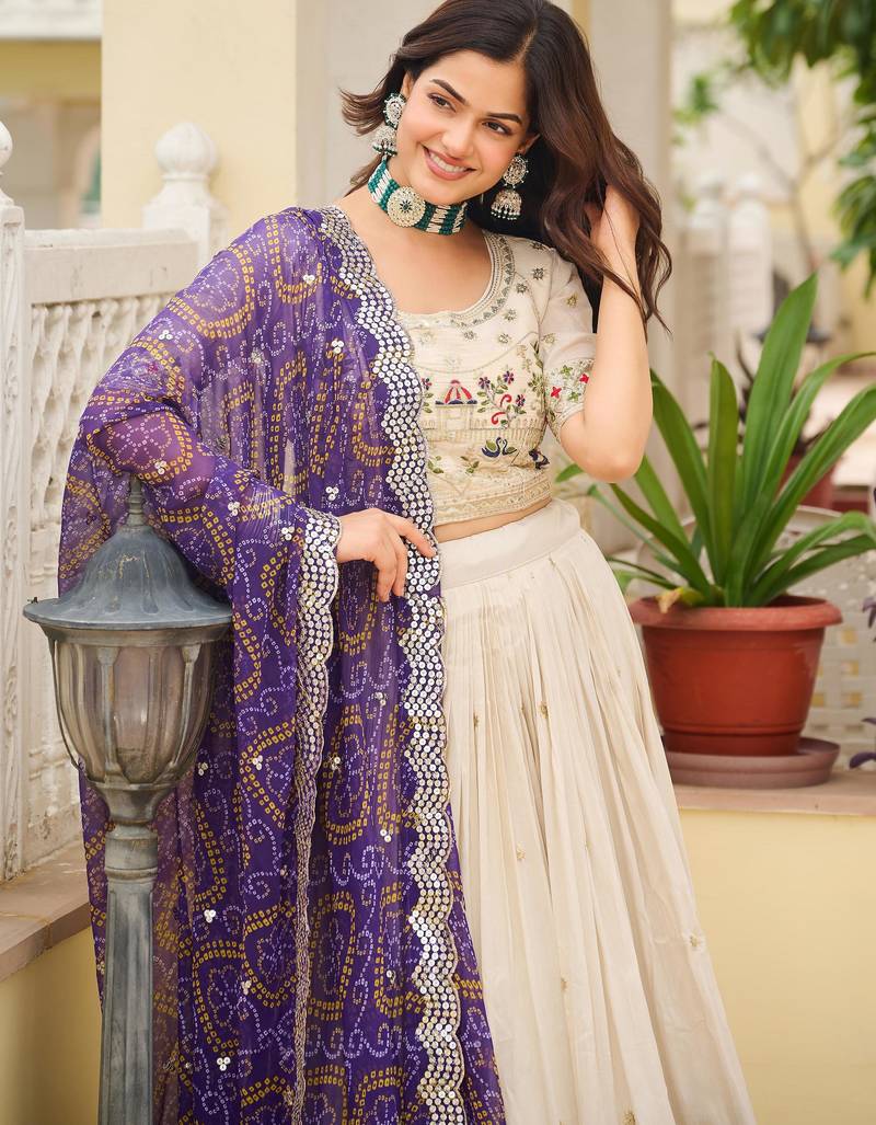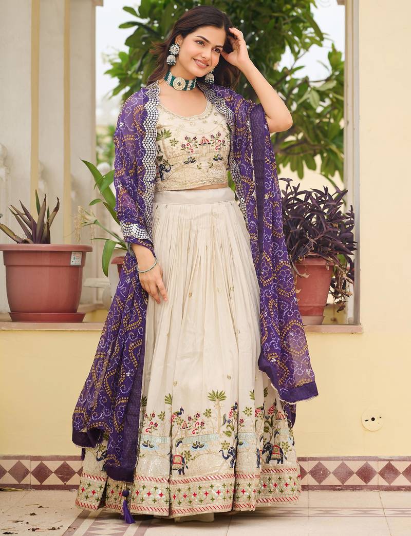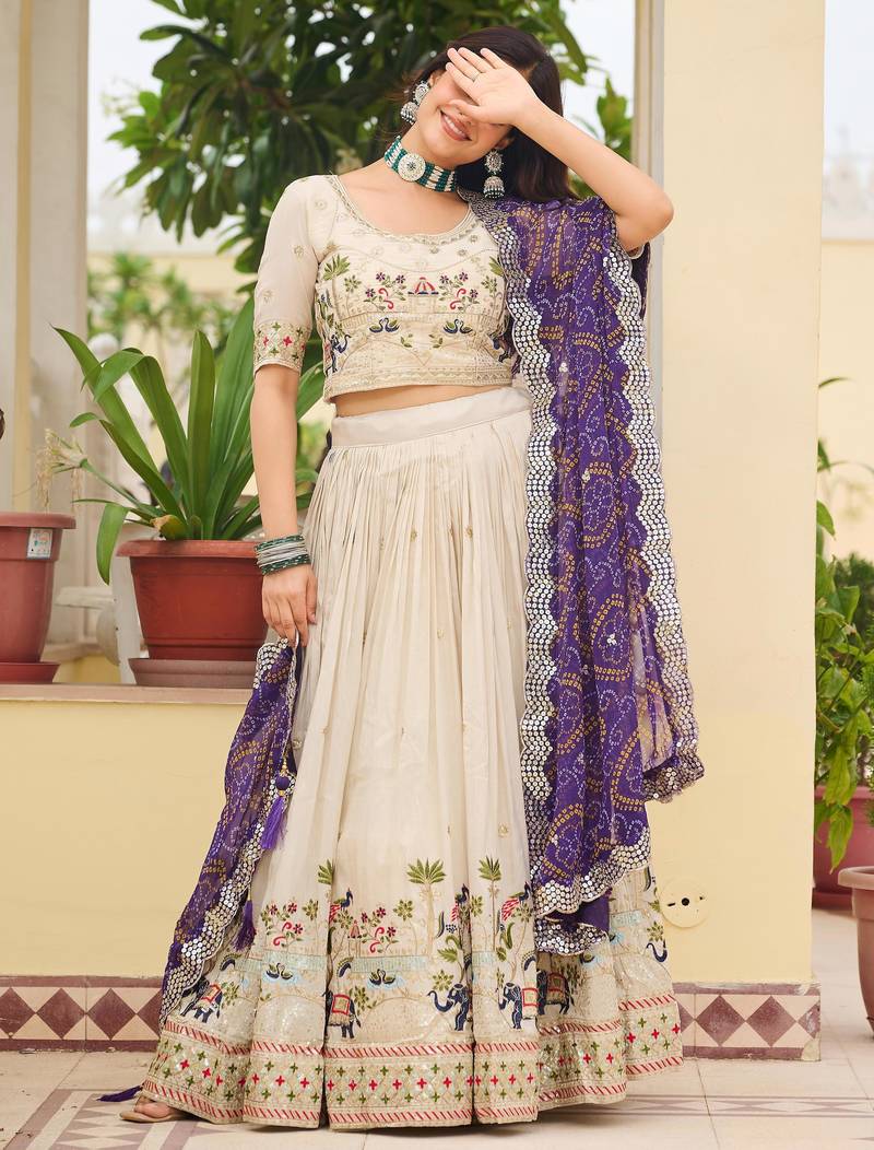 | Product Name | Off White Sequnis Silk Lehenga Set Choli With Dupatta With Purple Dupatta | |