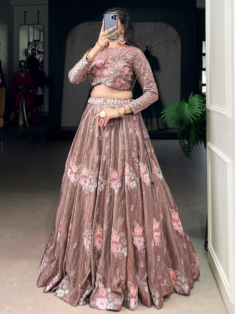 | Product Description | This Stunning Lehenga Set Comes In A Rich Dusty Pink Shade That Looks Both Modern And Royal. The Fendi Fabric Base Is Highlighted With All Over Sequins And Thread Embroidery Work That Adds Luxurious Shimmer And Intricate Floral Detailing.