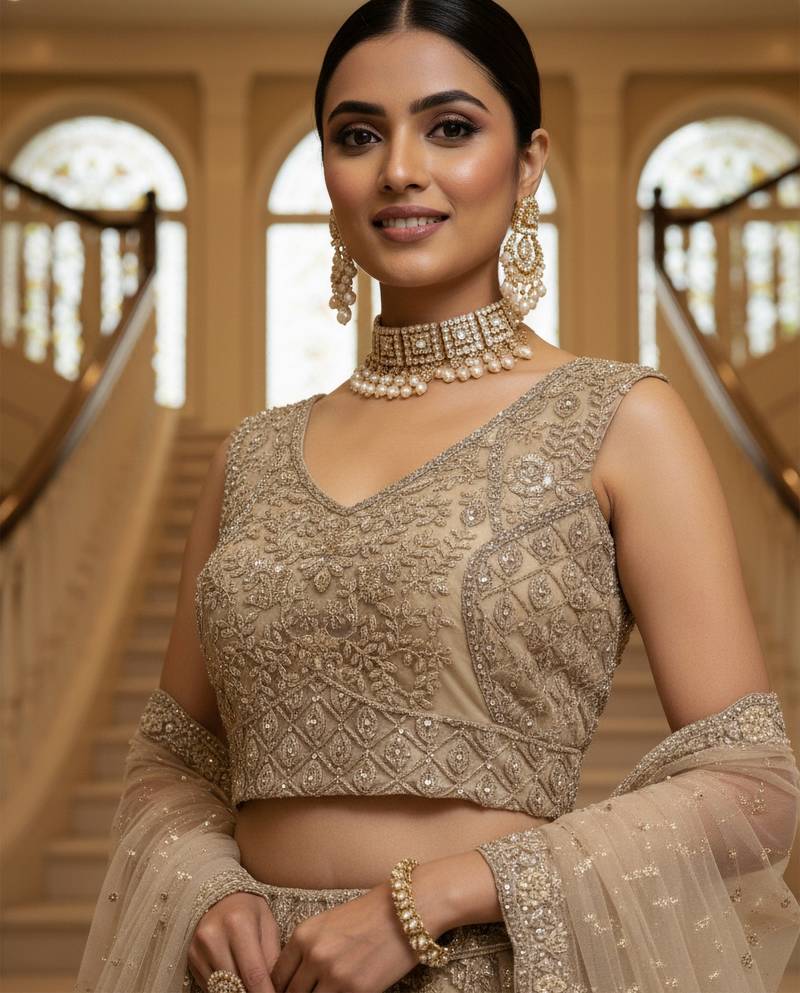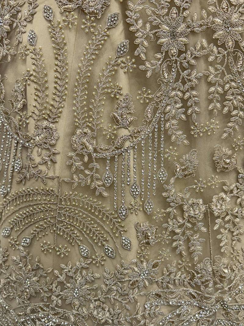 | Product Description | This Stunning Golden Lehenga Choli Is Crafted In Premium Net Fabric With Intricate Hand Embroidery All Over. The Shimmering Golden Color, Paired With Heavy Detailing, Creates A Regal And Luxurious Bridal Look.