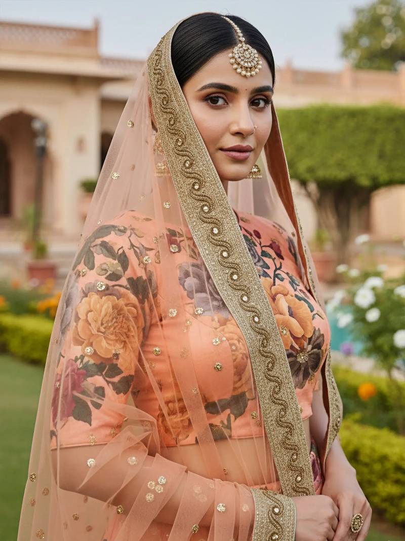 | Product Description | This Elegant Peach Floral Lehenga Beautifully Combines Freshness And Festivity In A Timeless Design. The Semi Stitched Lehenga Is Made From Soft Net Fabric, Adorned With Blooming Floral Digital Prints And Fine Sequin Embroidery That Adds A Gentle Shimmer.&Nbsp;