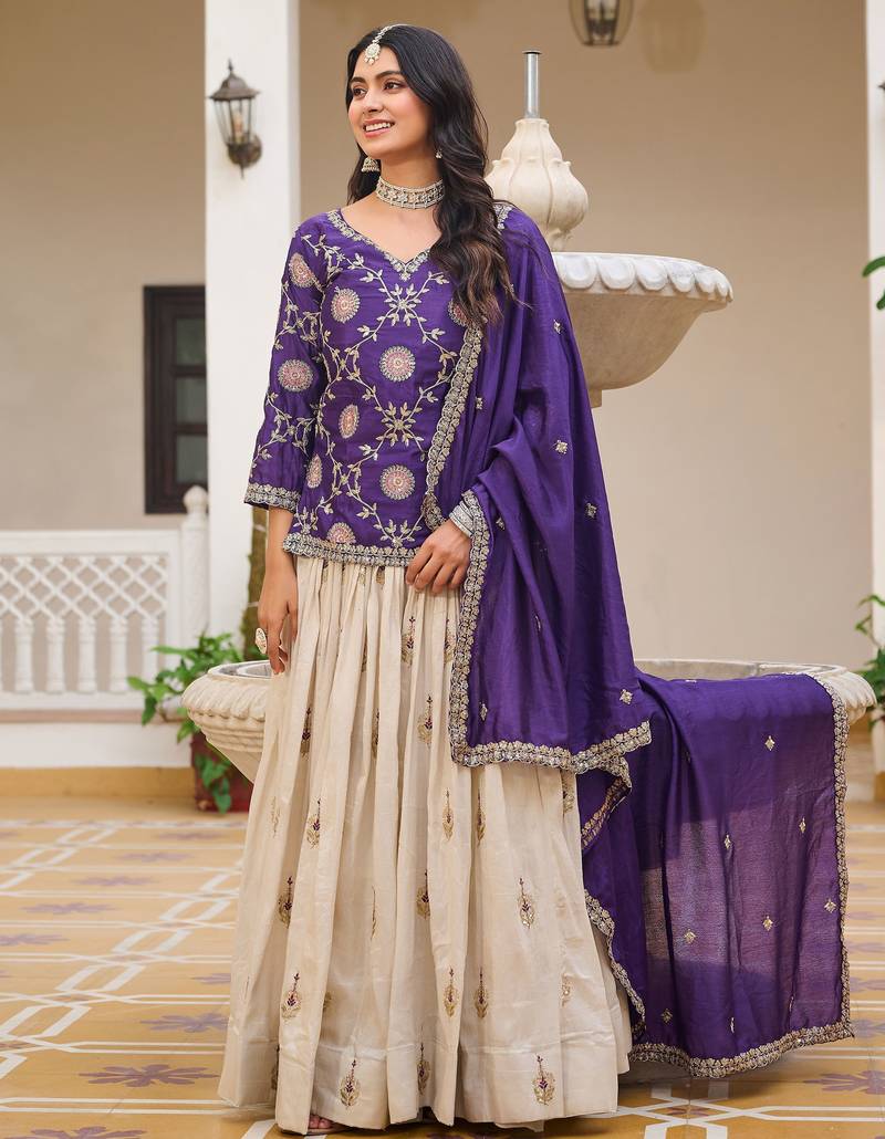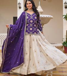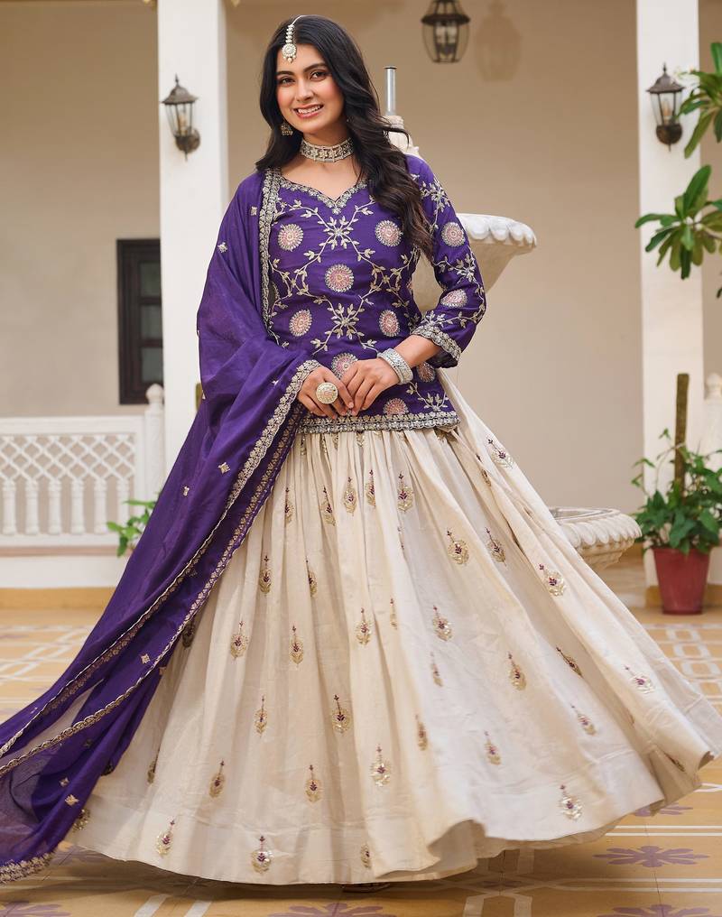 Purple Sequins Embroidered Chinon Lehenga With Long Choli