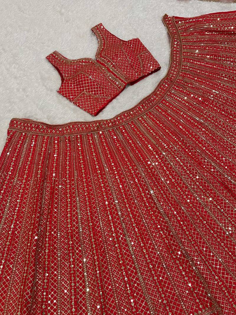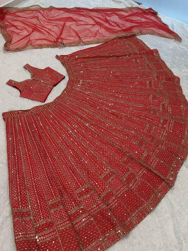 | Product Description | This Stunning Red Lehenga Is Crafted From&Nbsp;Heavy Malai Satin And Fully Adorned With Sparkling Sequins And Intricate Dori Work. The Rich Geometric And Traditional Motifs Create A Royal Bridal Look With Its&Nbsp;3.5 Meter Grand Flair And Can Can Attached For Perfect Volume.
