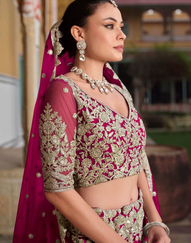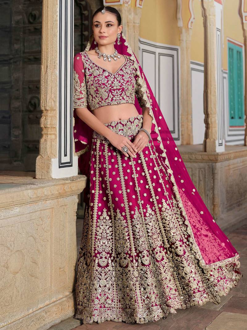 | Product Description | This Majestic Bridal Lehenga Captures Regal Beauty And Intricate Craftsmanship In Every Detail. The Semi Stitched Lehenga Is Crafted From Soft Net Fabric, Adorned With Rich Zari And Sequins Embroidery That Exudes Grandeur. Its Opulent Design And Structured Silhouette Create A Royal Look, Ideal For Weddings And Grand Festivities.&Nbsp;