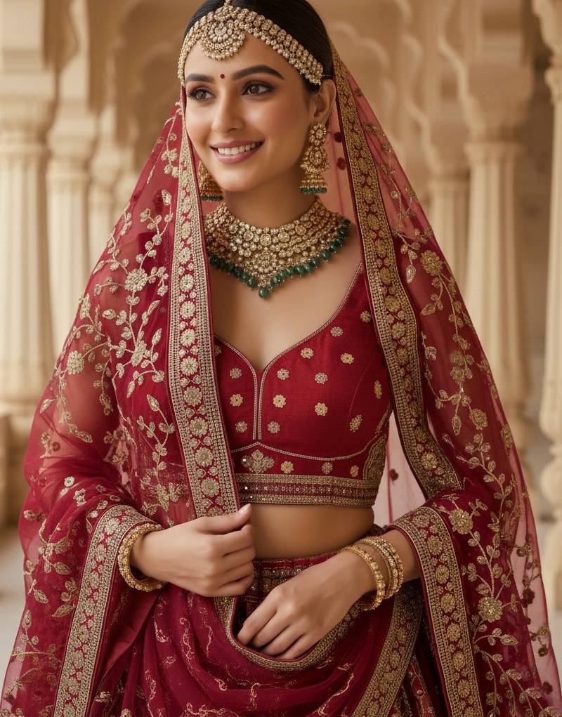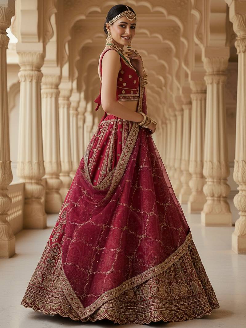 | Product Name | Red Embroidered Silk Bridal Lehenga Set Choli With Dupatta With Double Dupatta | |