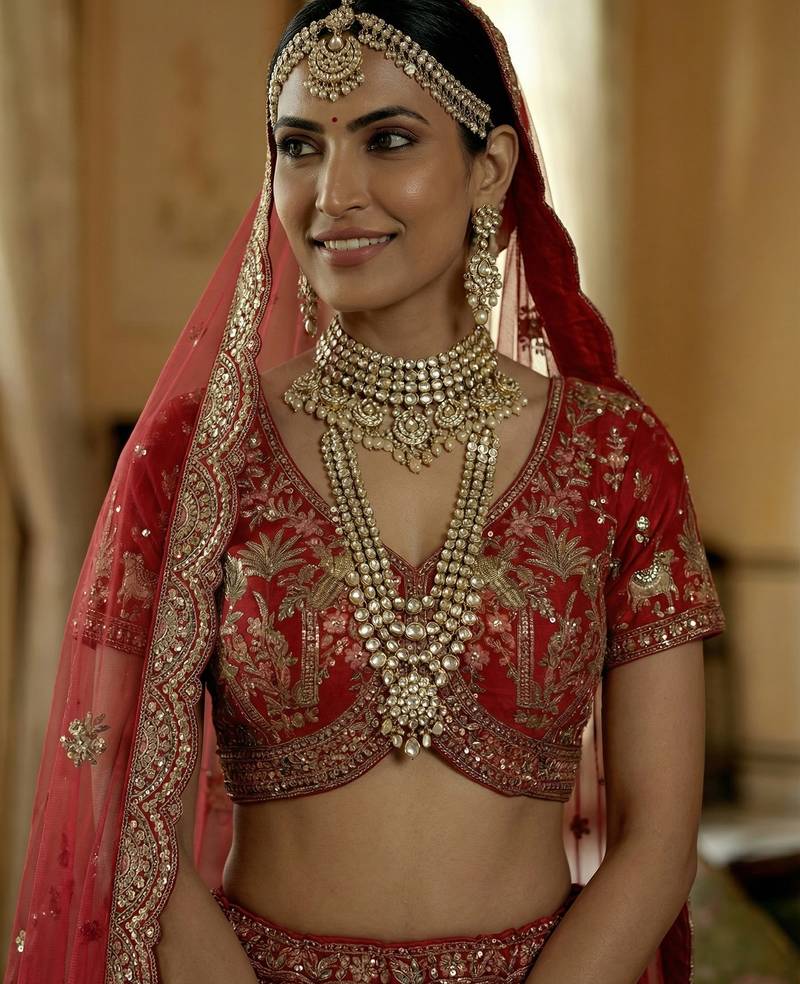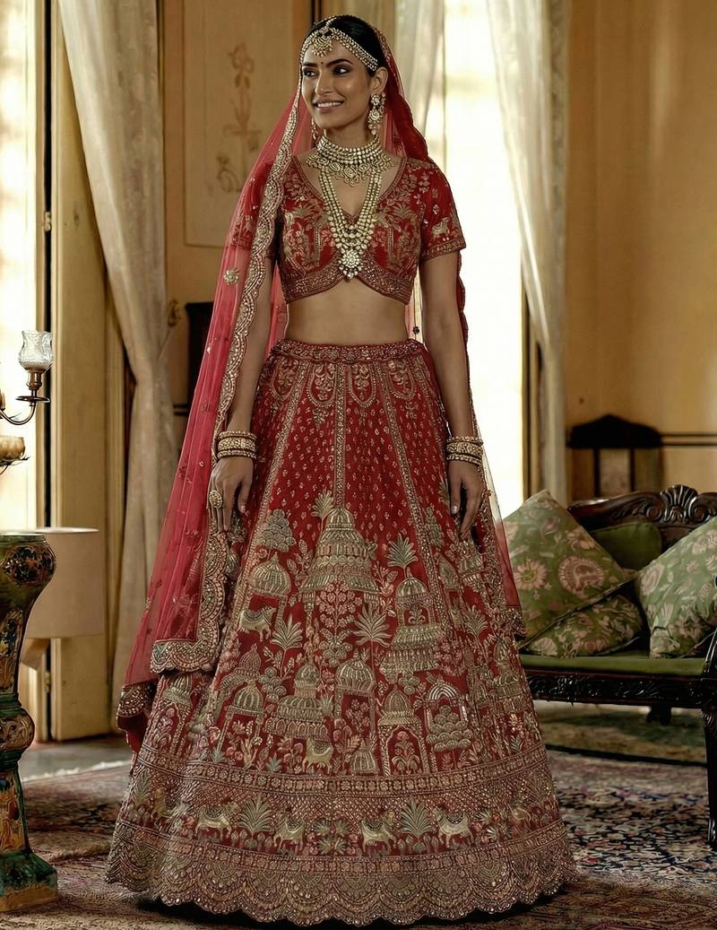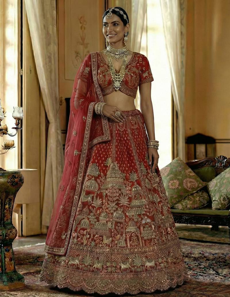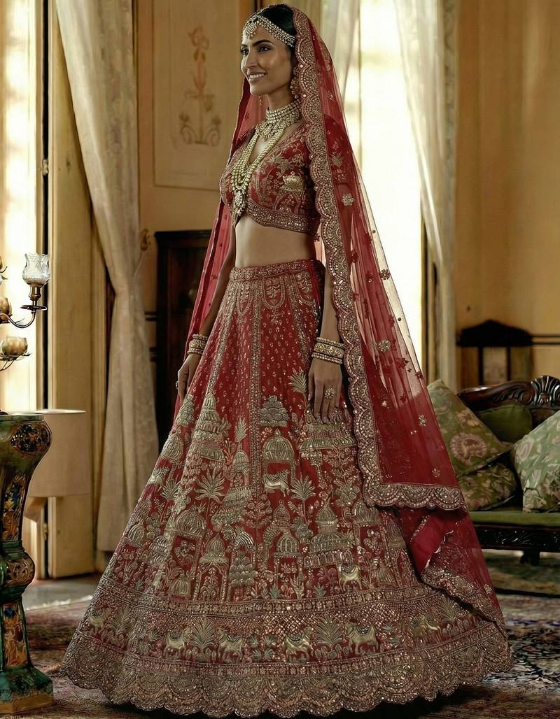 | Product Name | Red Embroidered Silk Bridal Lehenga Set Choli With Dupatta With Double Dupatta | |