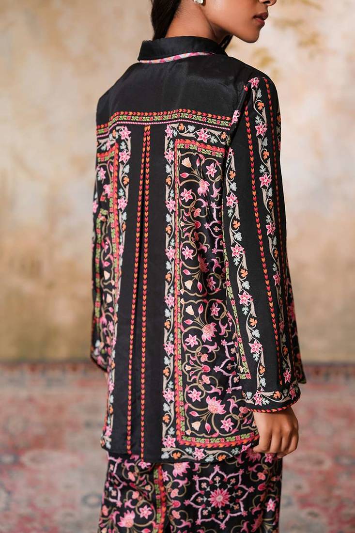 | Product Description | Elevate Your Casual Wardrobe With Bulbul Mahal Coord Set. This Trendy And Unique Boxy Black Crepe Silk Printed Shirt Beautifully Combines With Black Crepe Silk Printed Straight Fit Pants. This Statement Piece Is Inspired From The Tile Of Taj Mahal. The Shirt Is Tailored With A Concealed Placket, Full Sleeves And A Box Pleat At The Back For Ease In Movement.