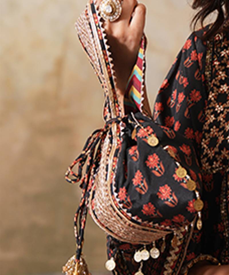 Black silk embroidered potli bag