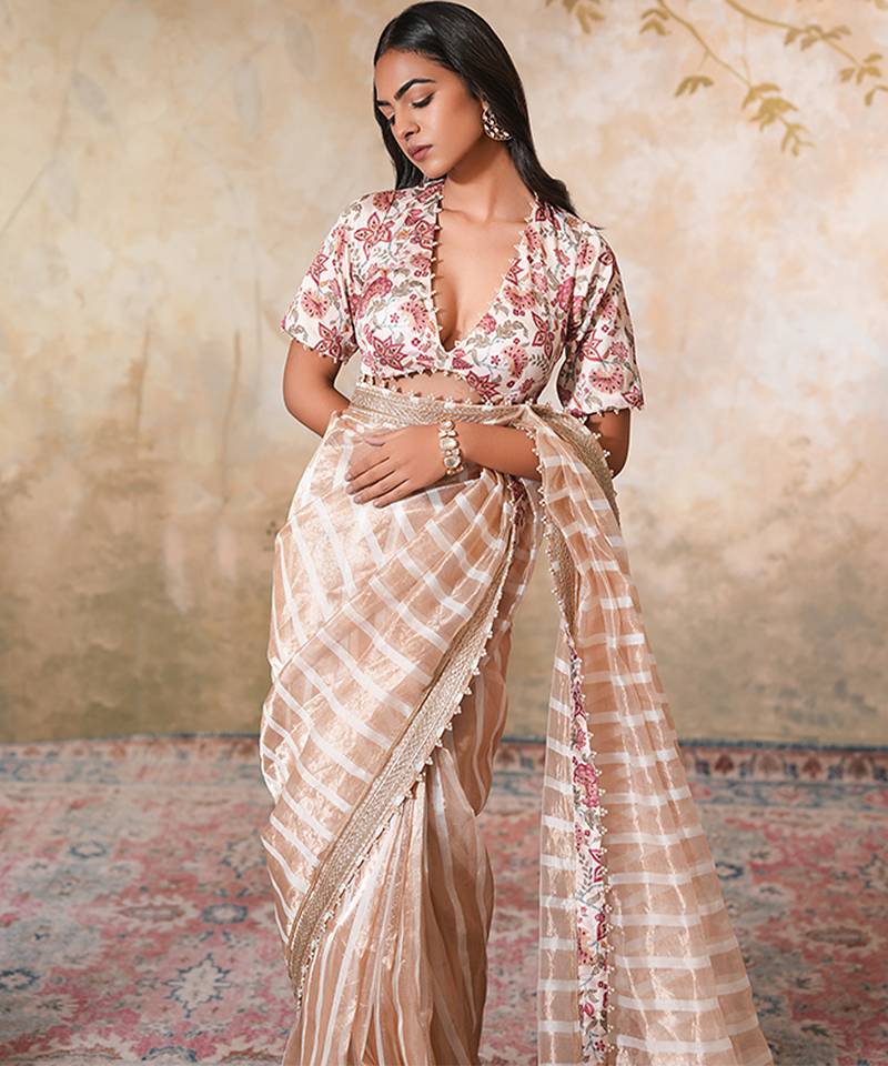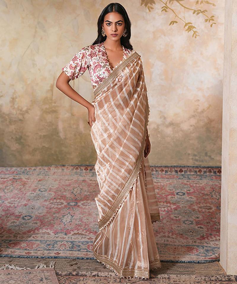 | Product Name | Gold Printed Pure Chanderi Silk Saree With Blouse | |