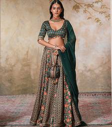 Green printed crepe lehenga with dupatta