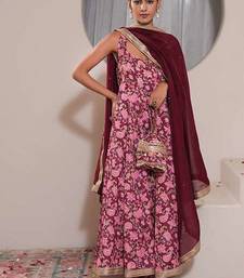 Pink printed crepe anarkali set with dupatta