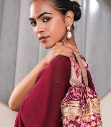 Pink silk embroidered potli bag