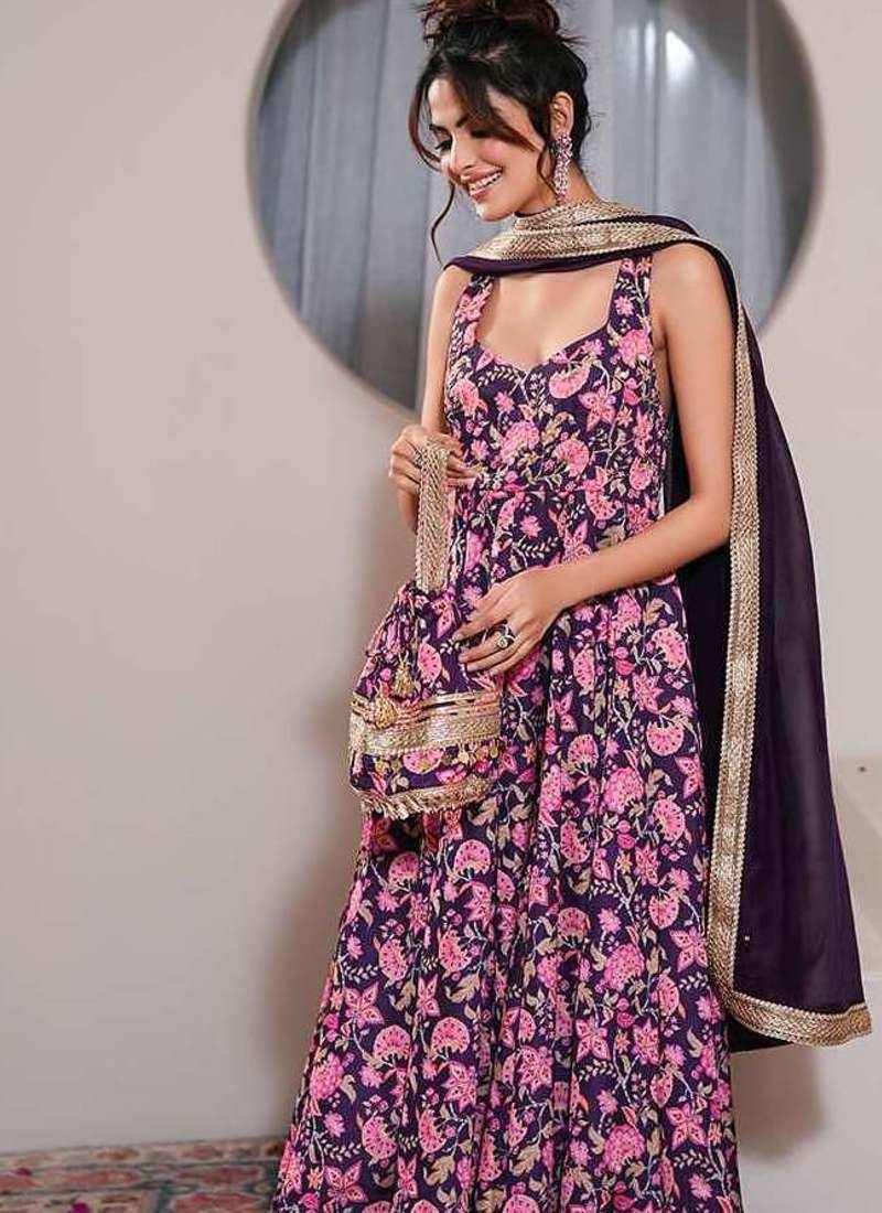 | Product Name | Purple Printed Crepe Anarkali Set | |