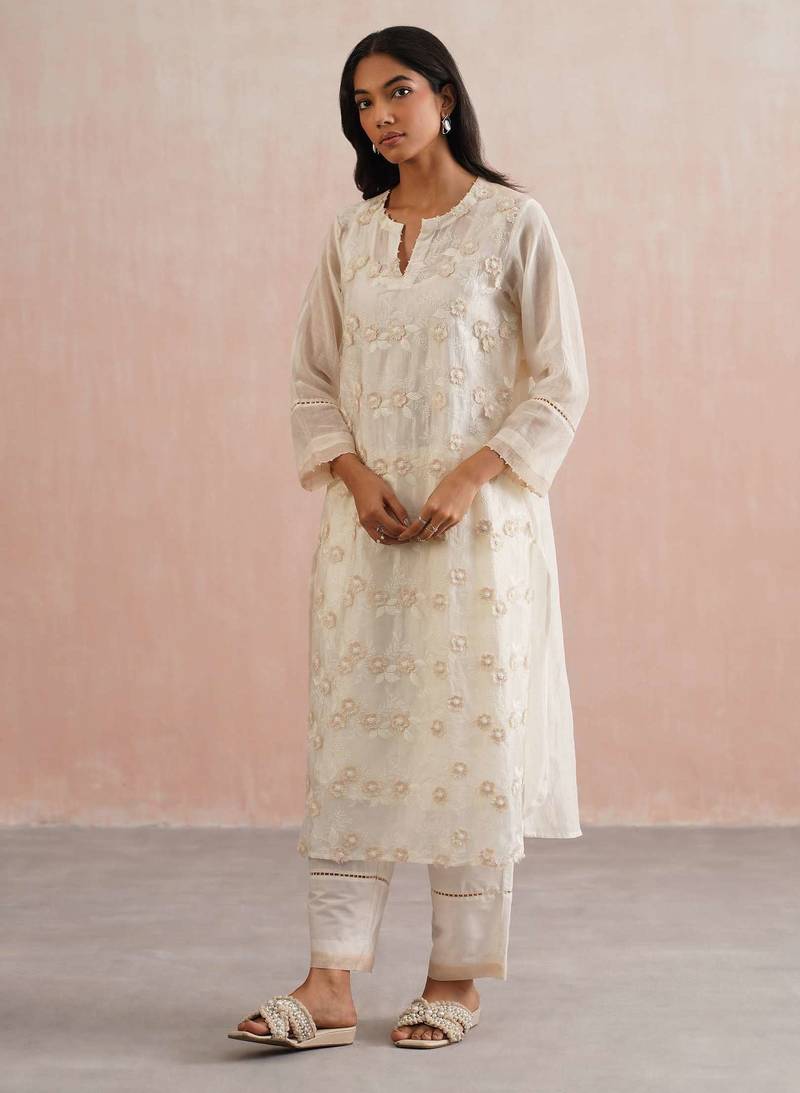 | Product Name | White Embroidered Chanderi Kurta Set | |
