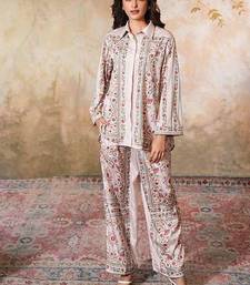 | Product Description | Elevate Your Casual Wardrobe With Shireen Mahal Coord Set. This Trendy And Unique Boxy Offwhite Crepe Silk Printed Shirt Beautifully Combines With Offwhite Crepe Silk Printed Straight Fit Pants. This Statement Piece Is Inspired From The Tile Of Taj Mahal. The Shirt Is Tailored With A Concealed Placket, Full Sleeves And A Box Pleat At The Back For Ease In Movement.
