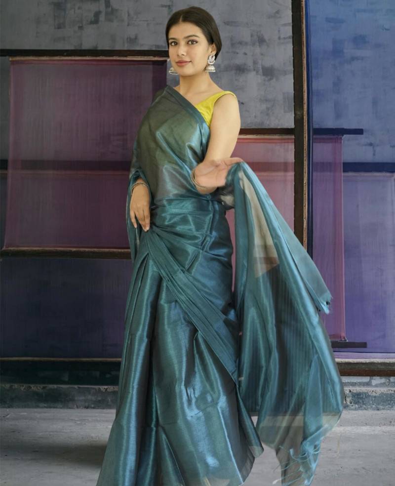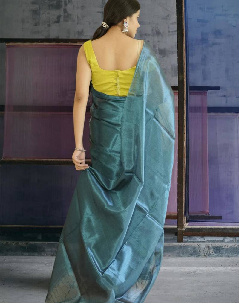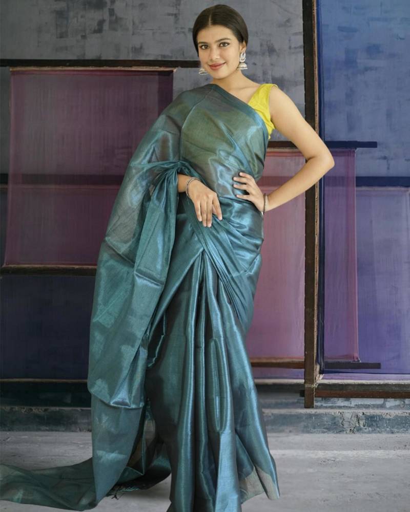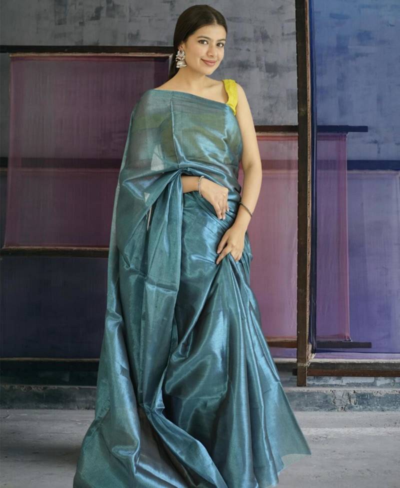 | Product Name | Blue Glass Tissue Silk Blend Saree | |