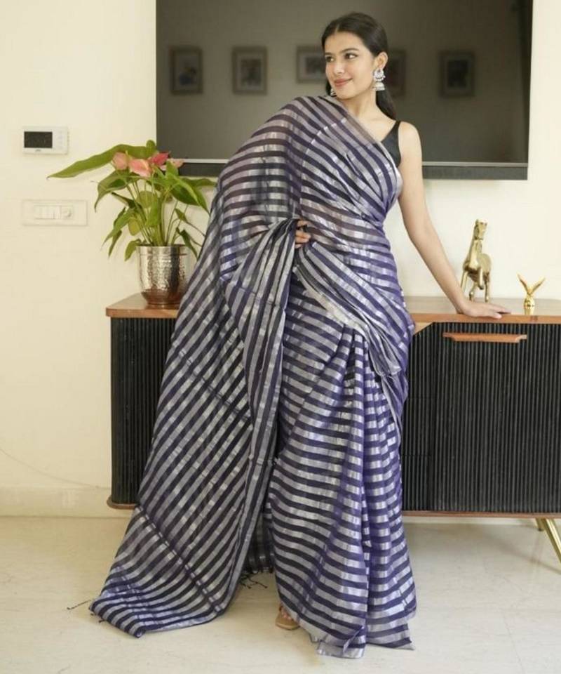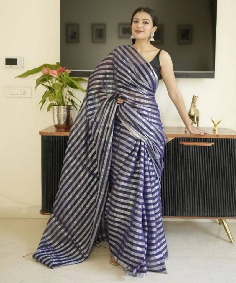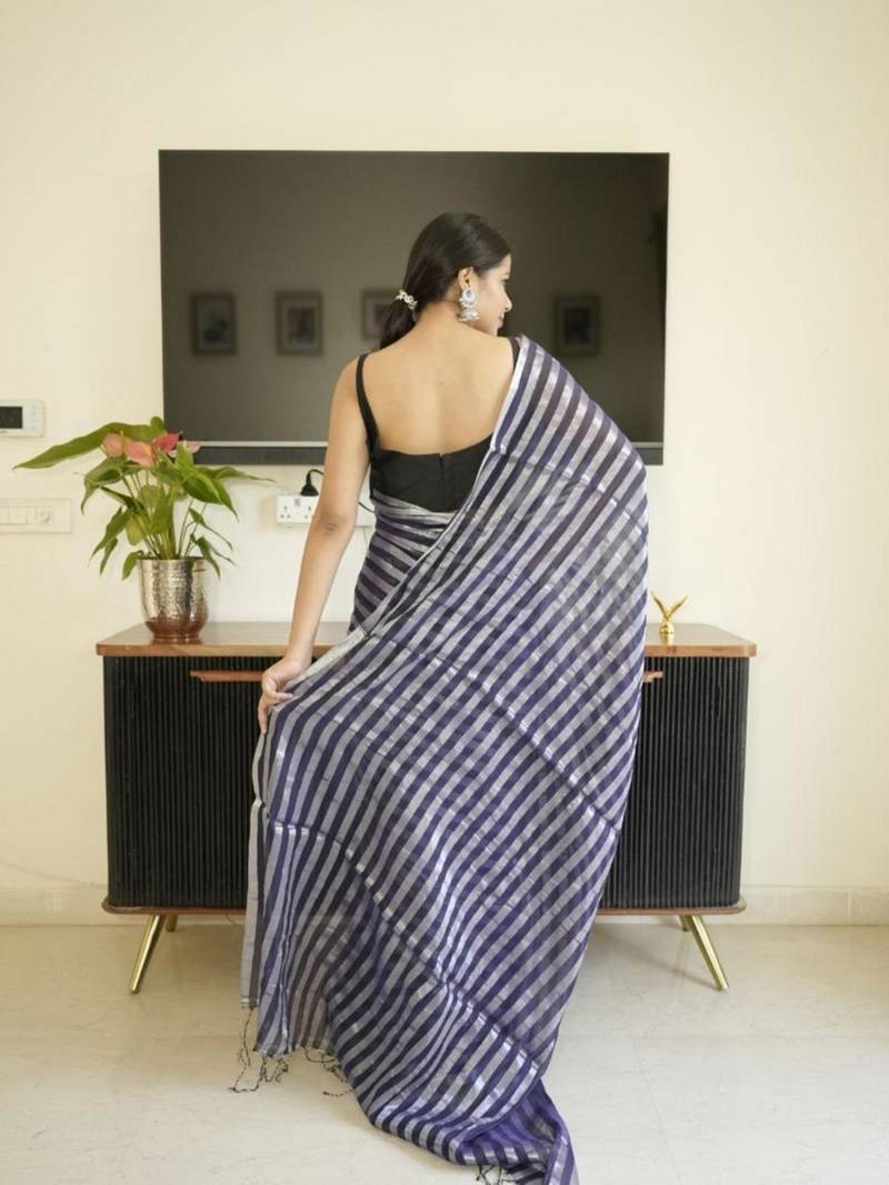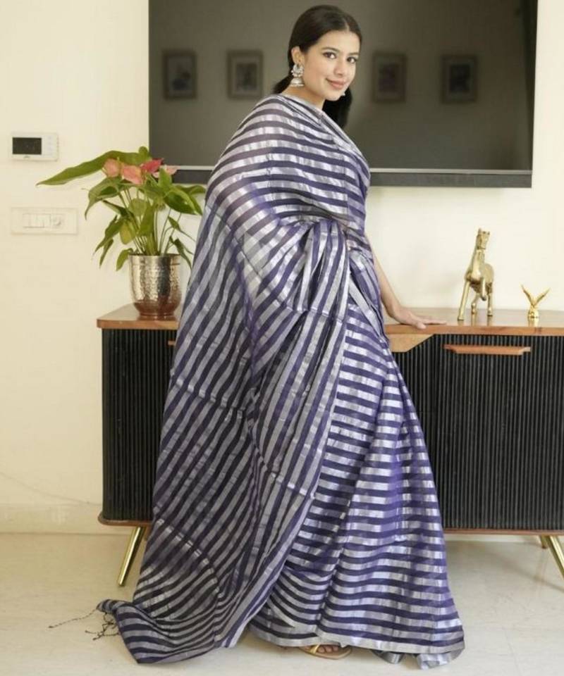 | Product Name | Blue Mul Cotton Saree With Zari Sripes | |