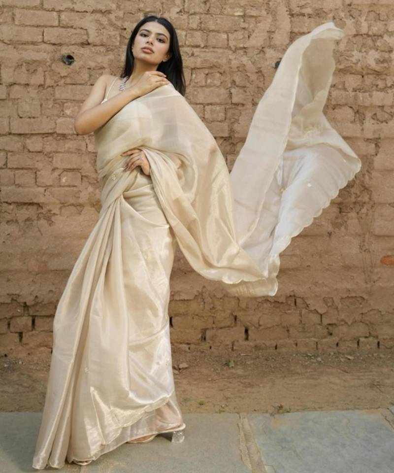 Ivory & gold dual-tone saree for timeless elegance