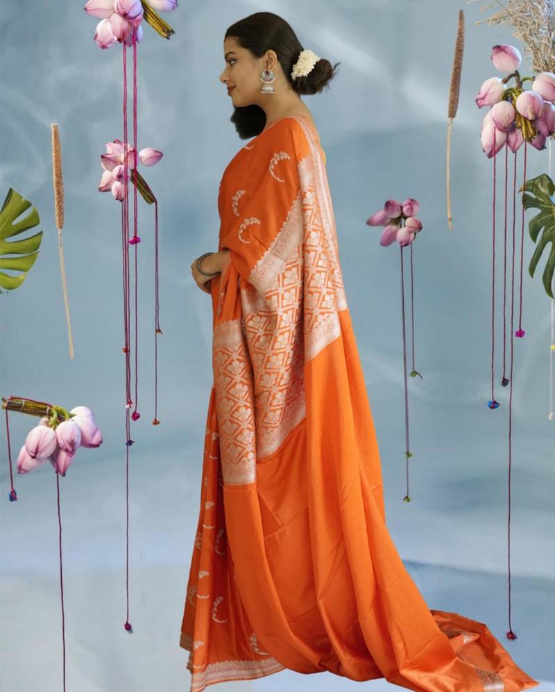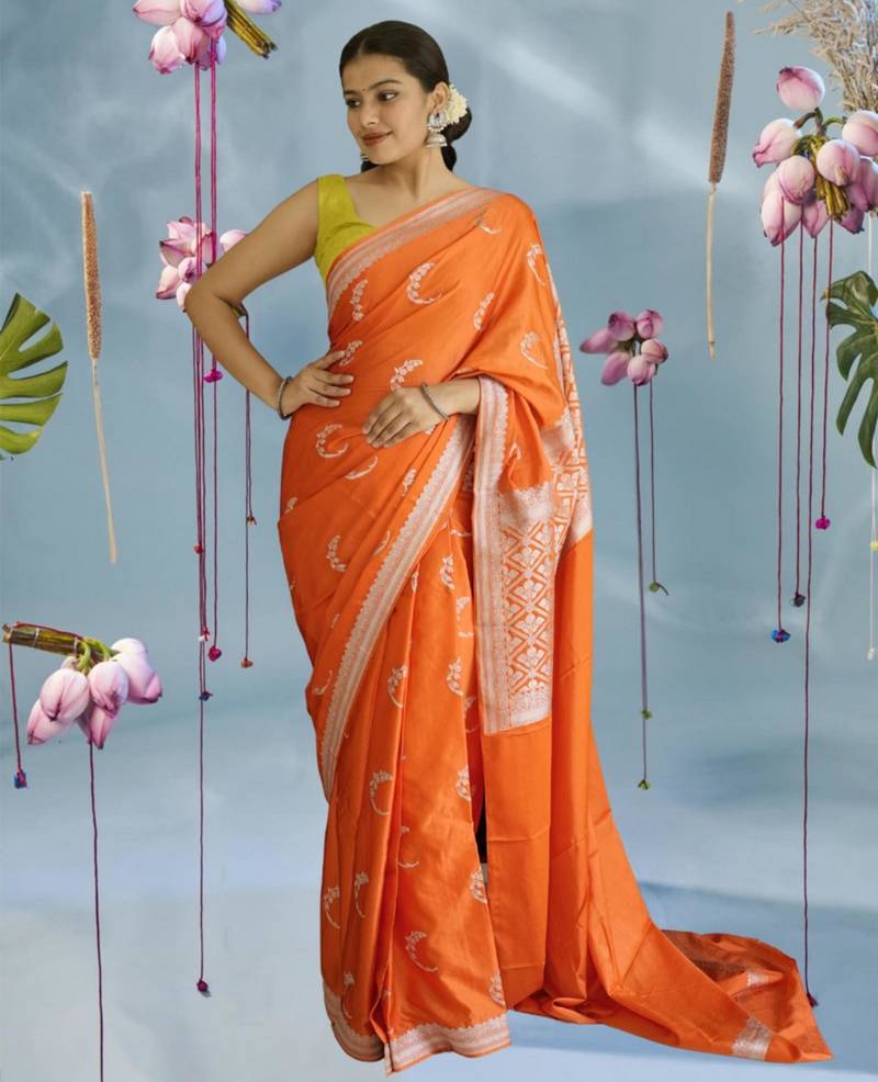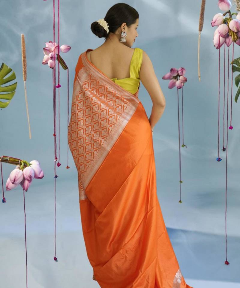 | Product Name | Orange Banarasi Silk Saree With Zari Border | |
