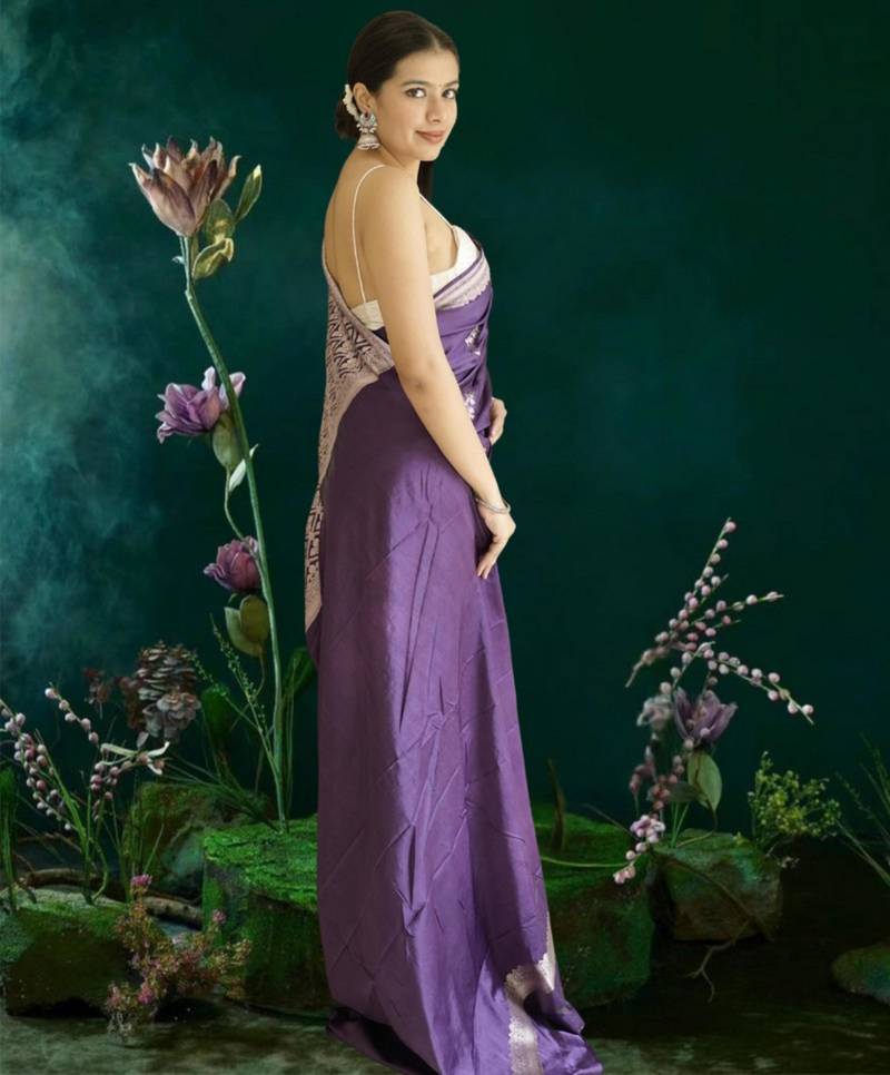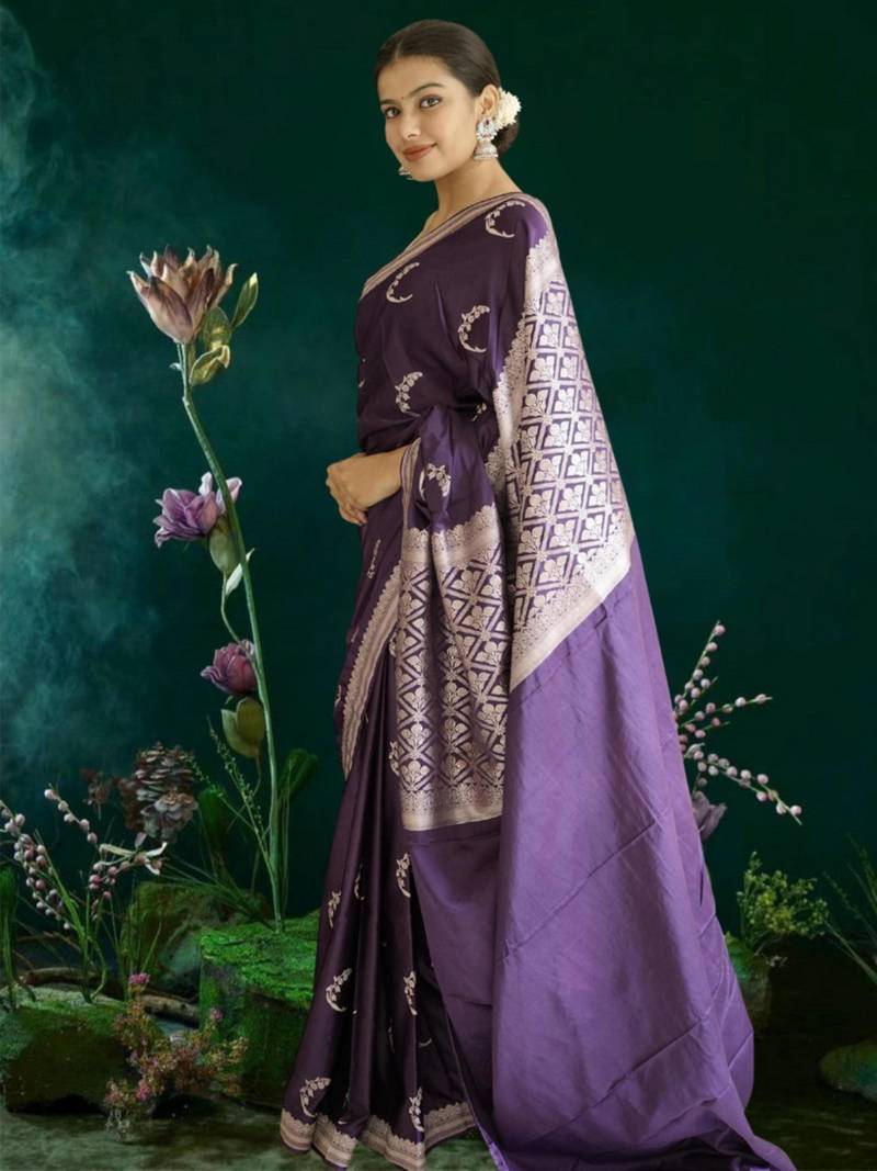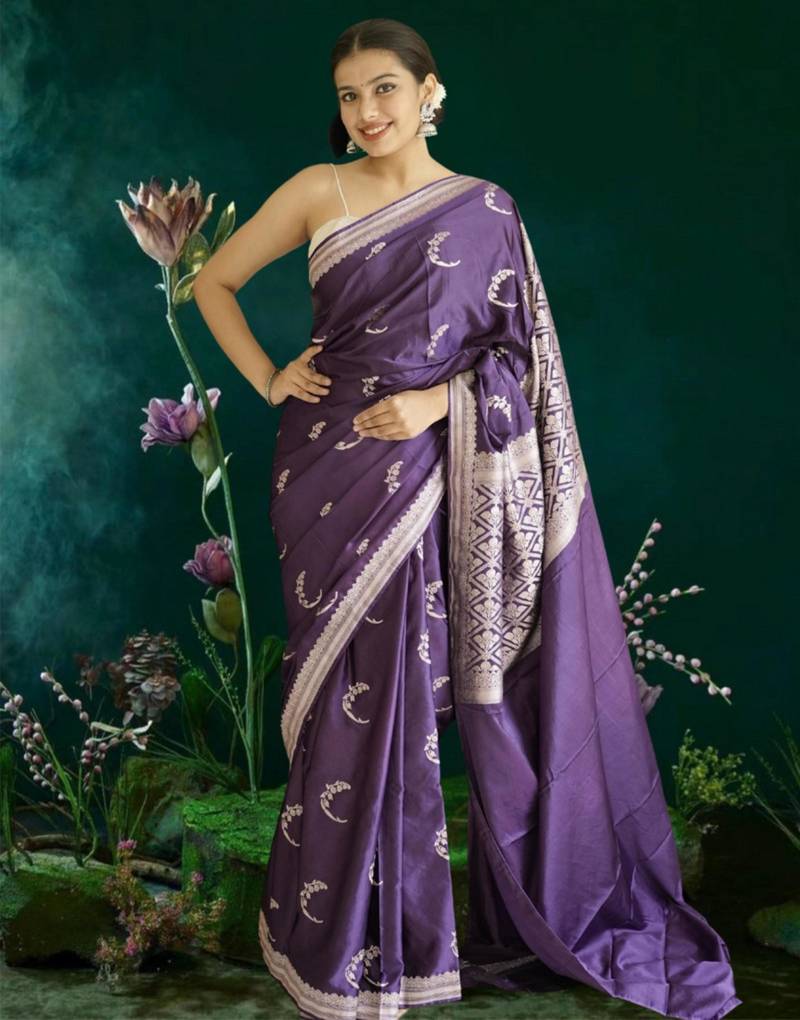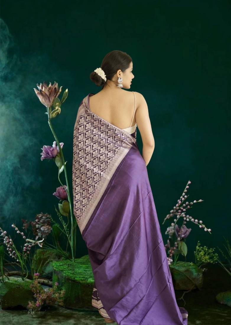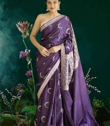 Purple banarasi silk saree with zari border