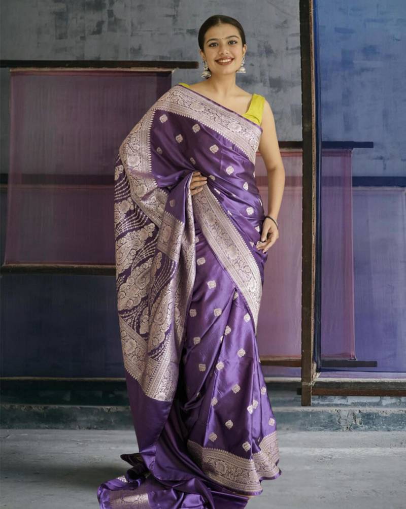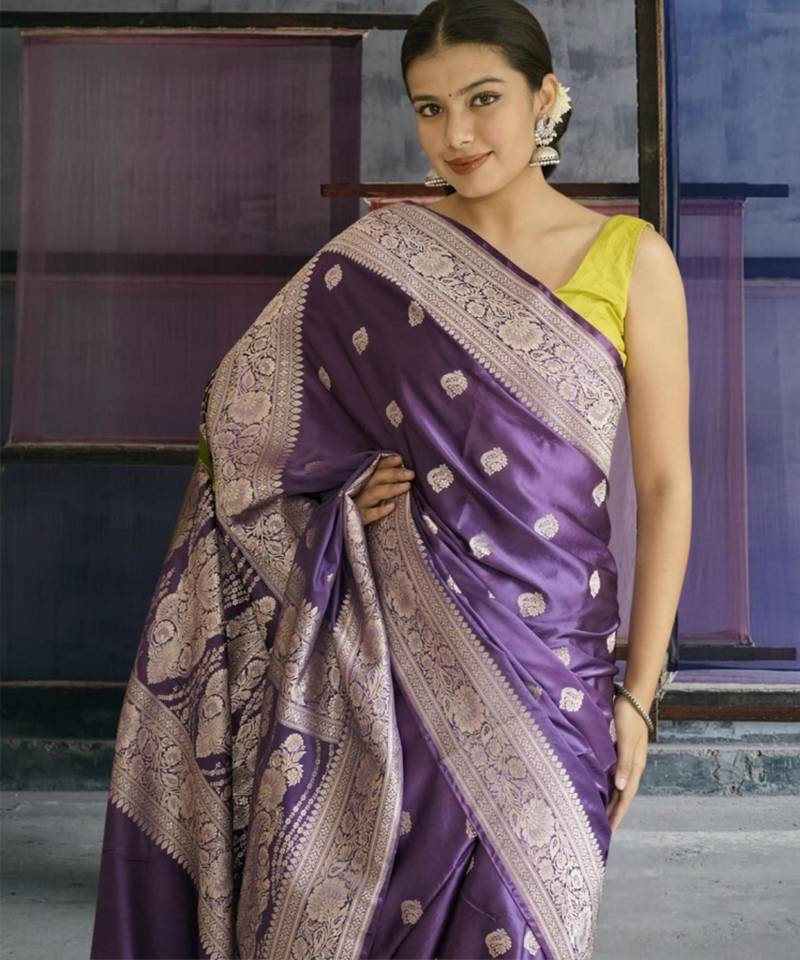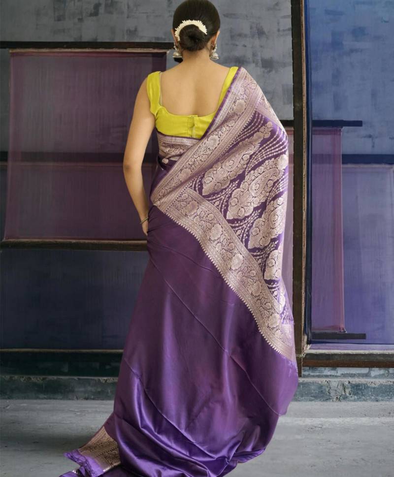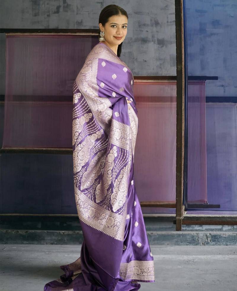 Purple banarasi silk saree with zari border