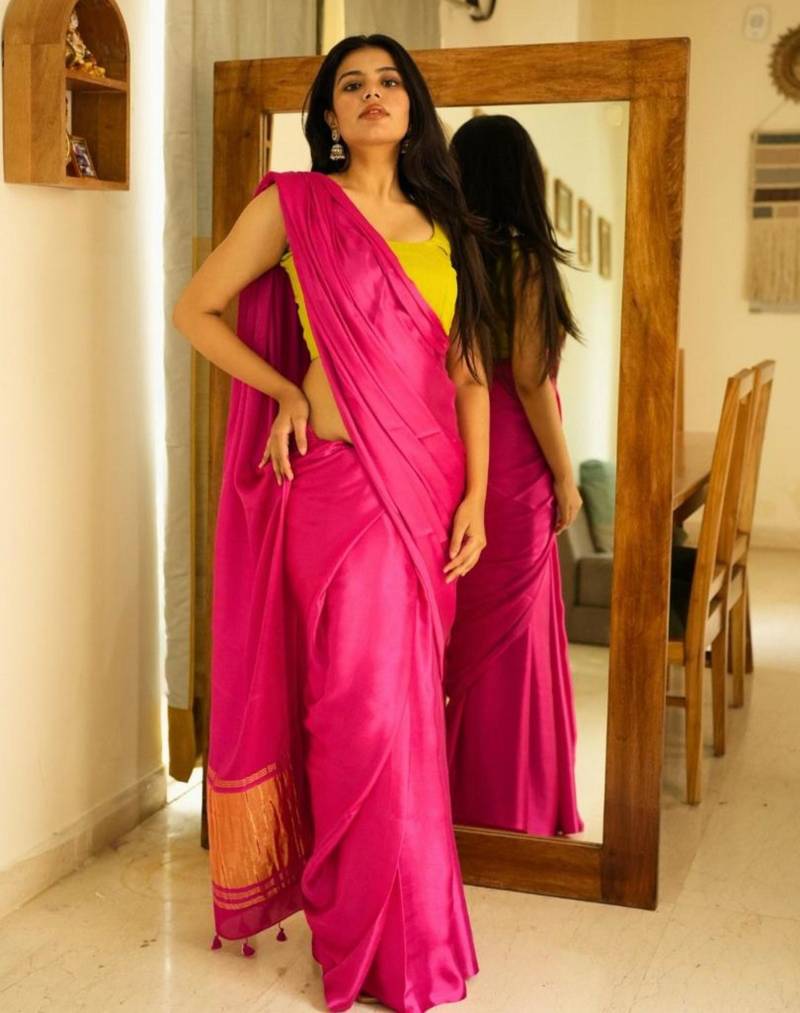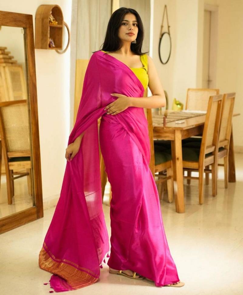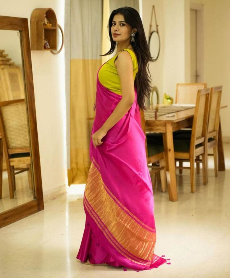 | Product Name | Rani Radiance Pink Silk Blend Saree With Gold Zari Border | |