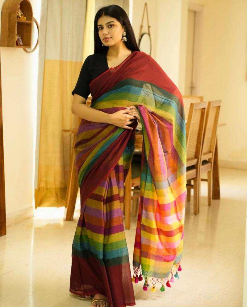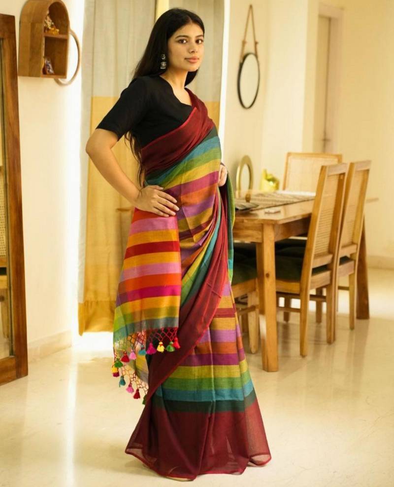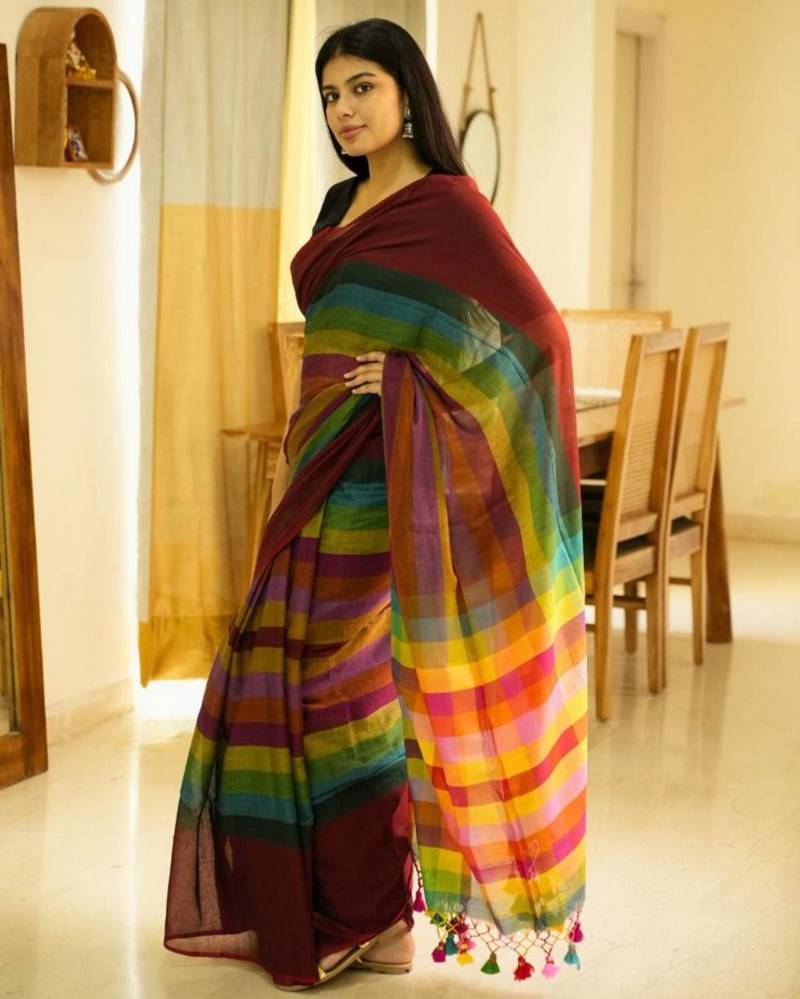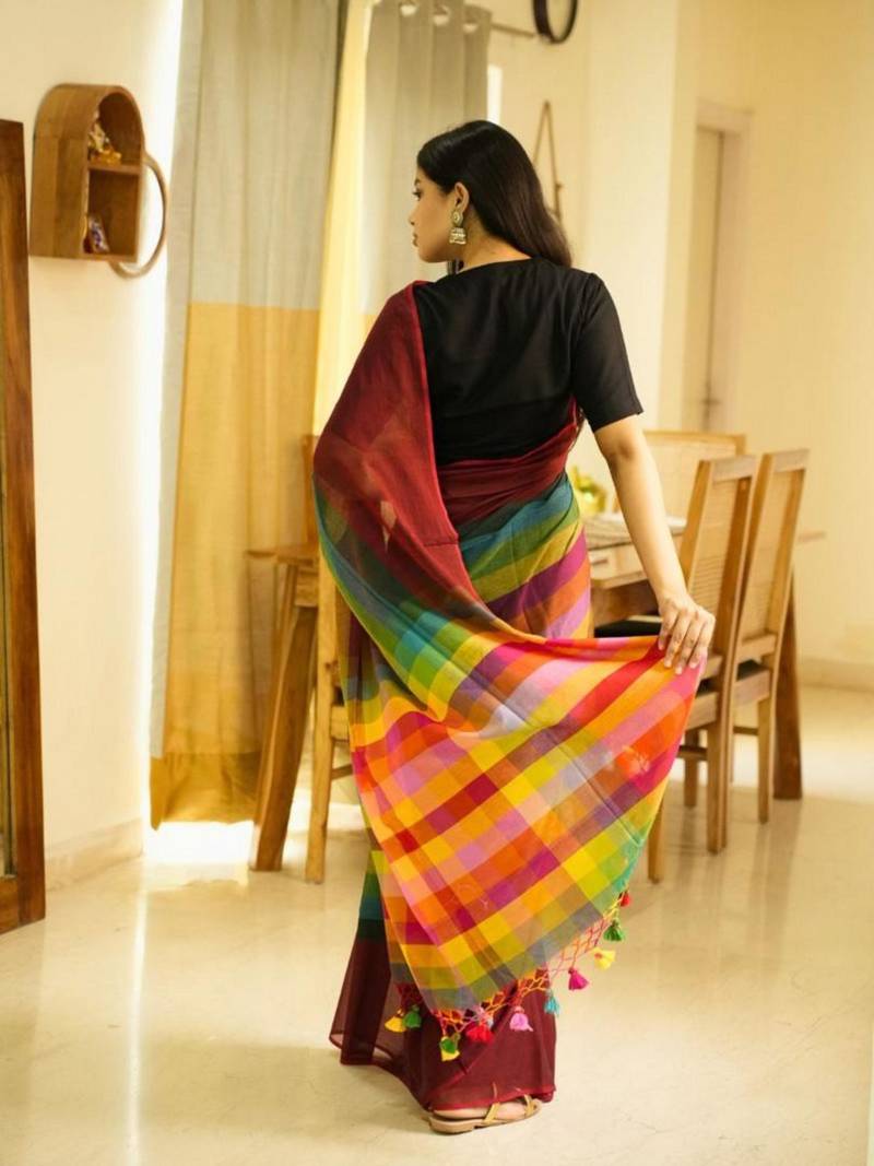 | Product Name | Red Palettes Maroon Mul Cotton Saree With Striped Checked Pallu | |
