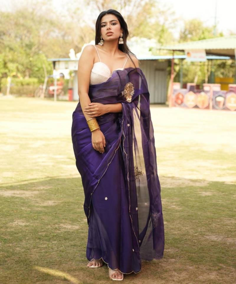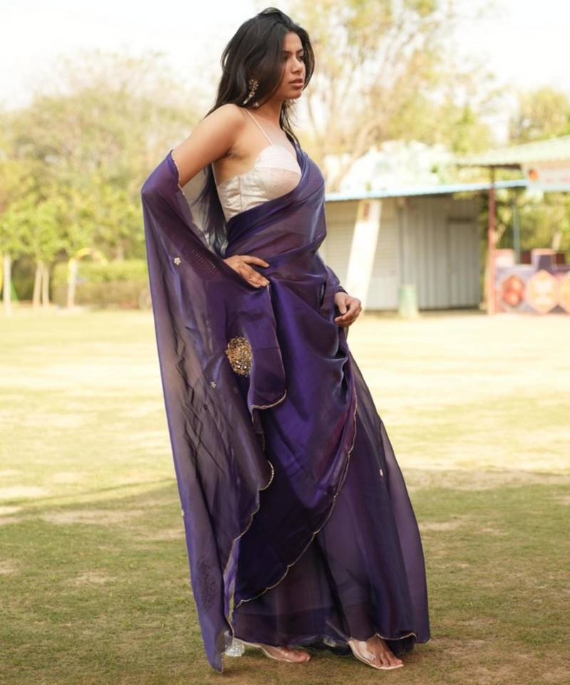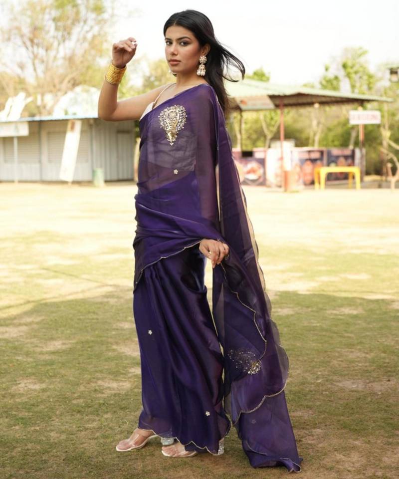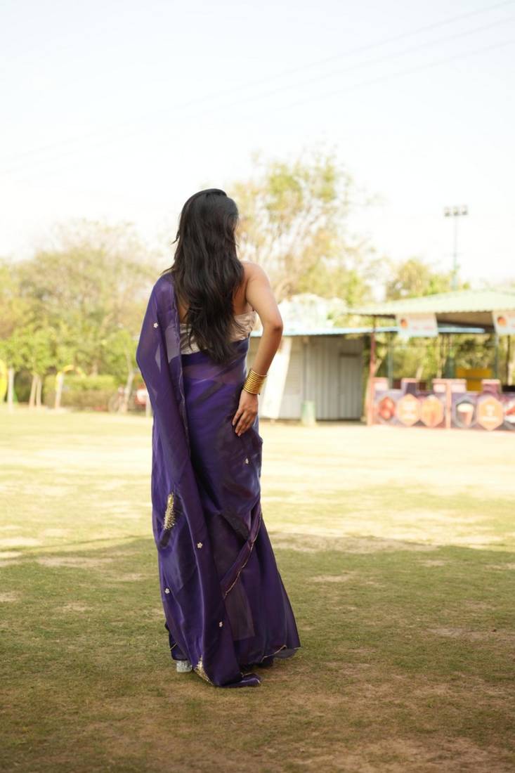 | • | Saree | : | Color- Purple / Fabric- Organza |