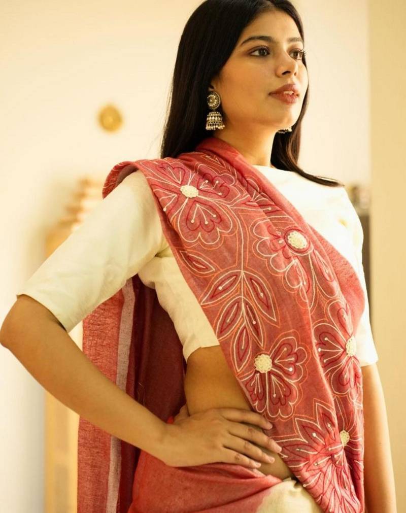 | Product Name | Rosé Whisper Handcrafted Floral Linen Saree In Dual Tone | |