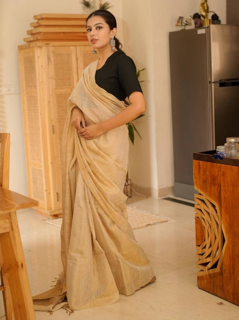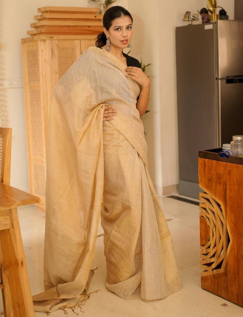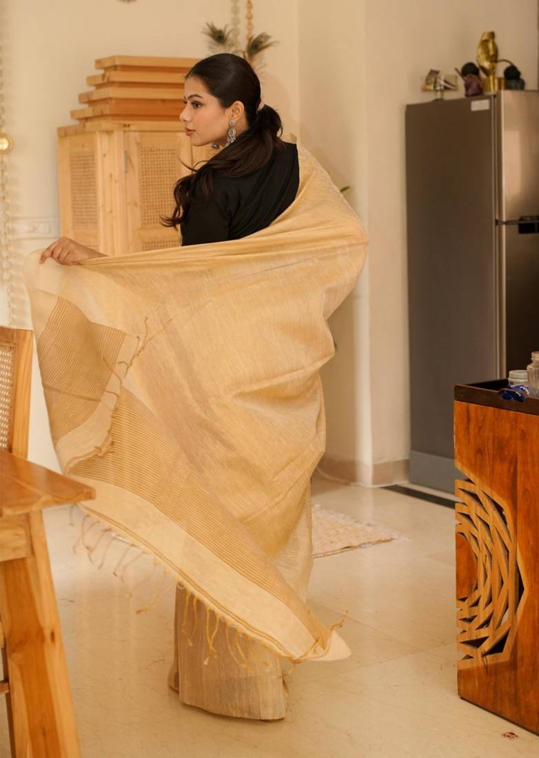 | Product Name | Sunehri Handwoven Beige Gold Tissue Linen Saree With Subtle Zari Highlights | |