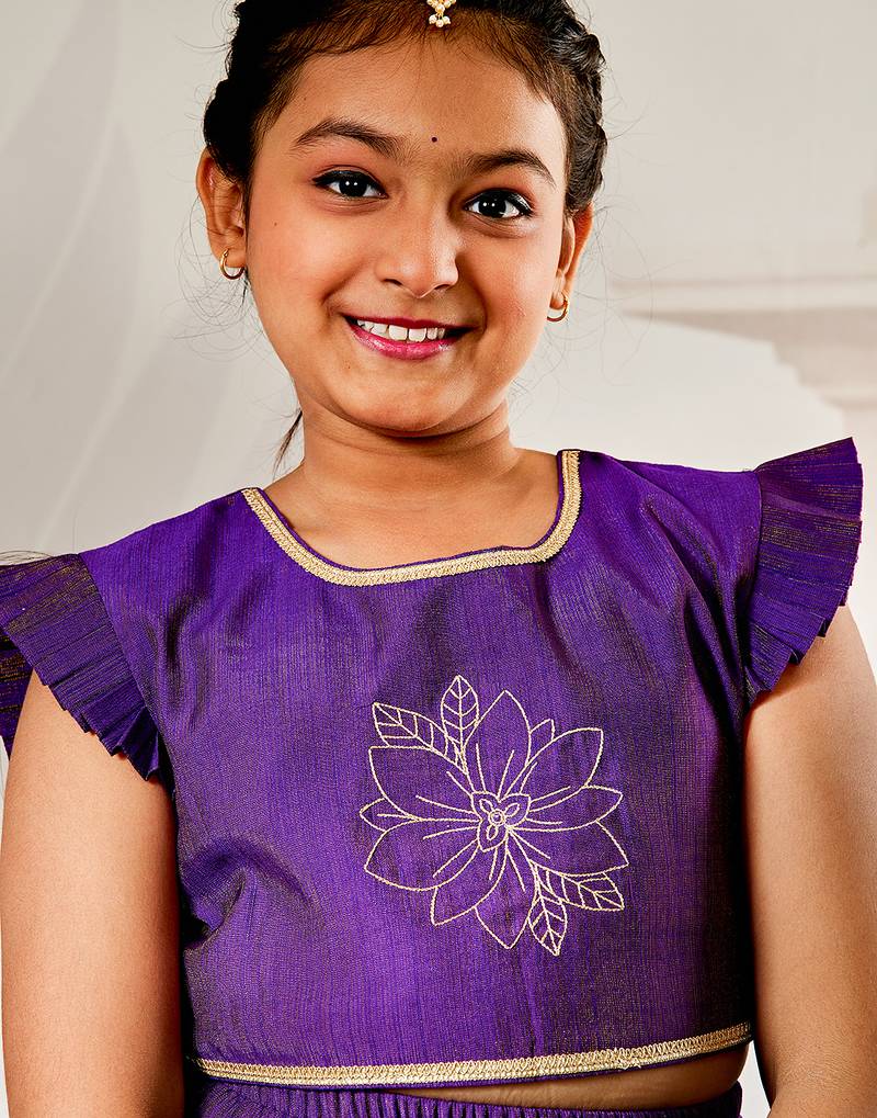 | Product Name | Vastramay Girls Traditional Purple Silk Lehenga Set With Thread Embroidery And Gold Dupatta For Wedding Party Wear | |