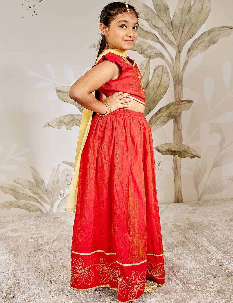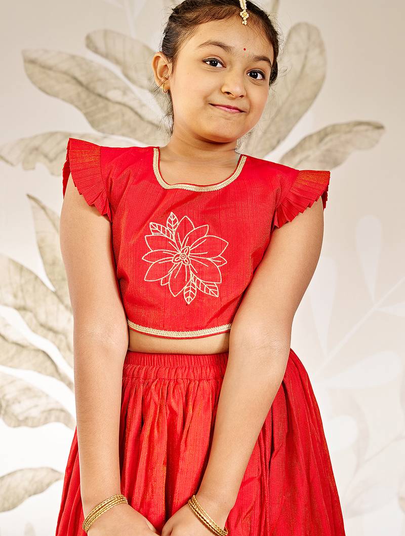 | Product Name | Girls Traditional Red Silk Lehenga Set With Thread Embroidery | |