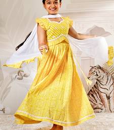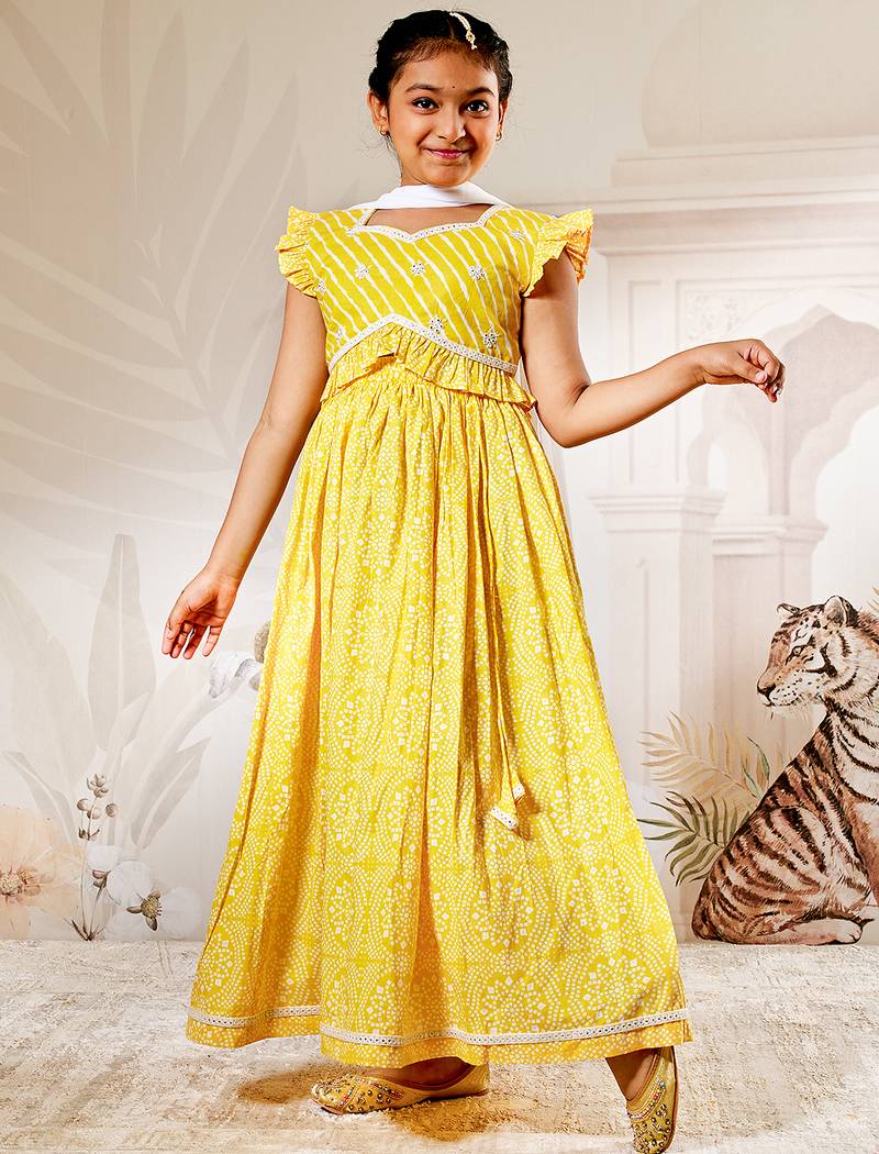 Vastramay girls traditional yellow cotton lehenga set with embroidery mirror work and dupatta for wedding festival wear