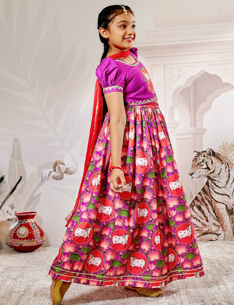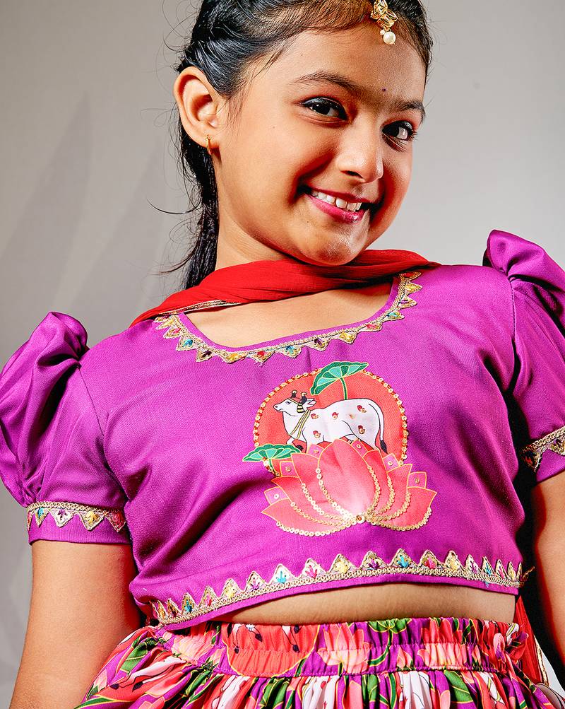 | Product Description | Designed For Tweens, This Vastramay Lehenga Set Brings Festive Joy With A Beautifully Printed Flared Lehenga, Crop Top With Sequin Details, And A Matching Chiffon Dupatta. Ideal For Janmashtami Or Any Traditional Celebration. |