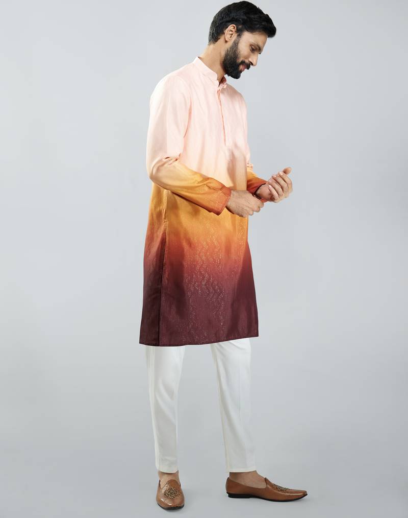 | Product Name | Men Brown Silk Blend Ombre Kurta Set With Cream Pant Wedding & Festive Wear | |