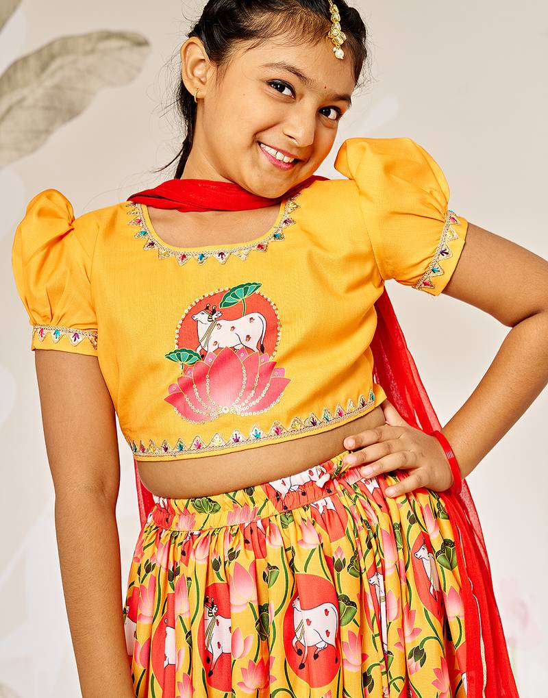 Mustard & red girls lehenga set