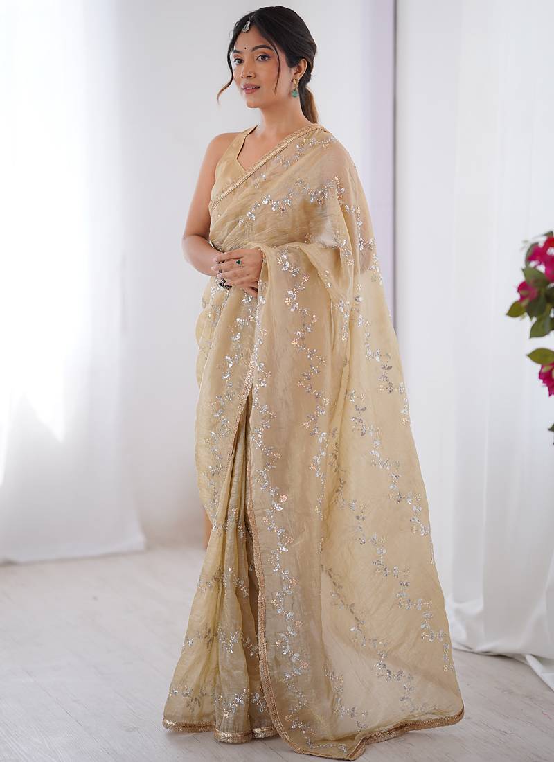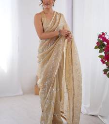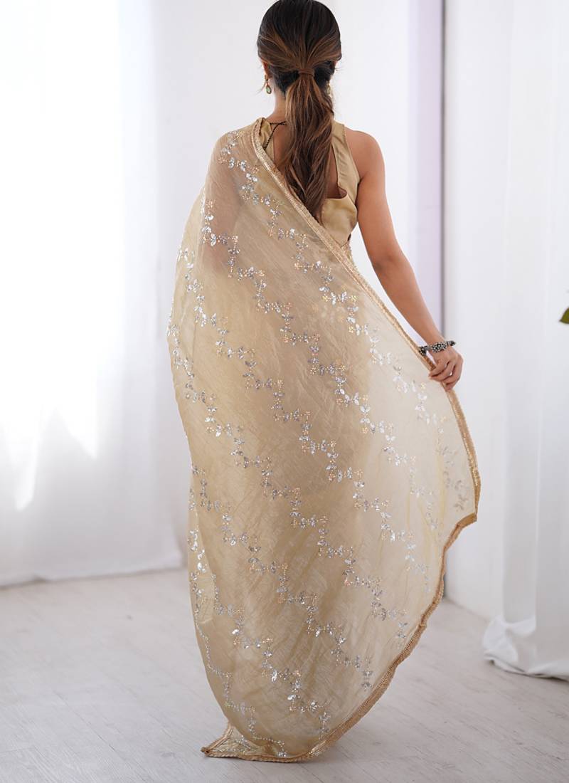 | Product Name | Beige Organza Moti & Val Sequence Party Wear Saree | |