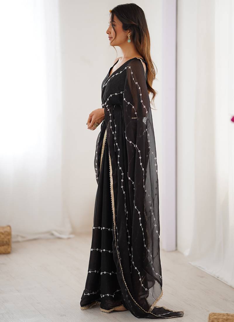 | Product Name | Black Smooth Sitara Fabric Moti & Val Sequence Designer Saree | |