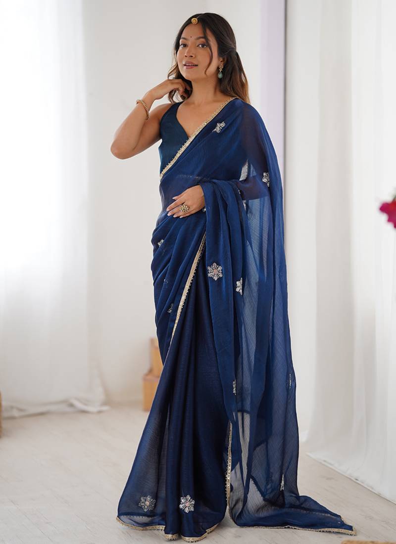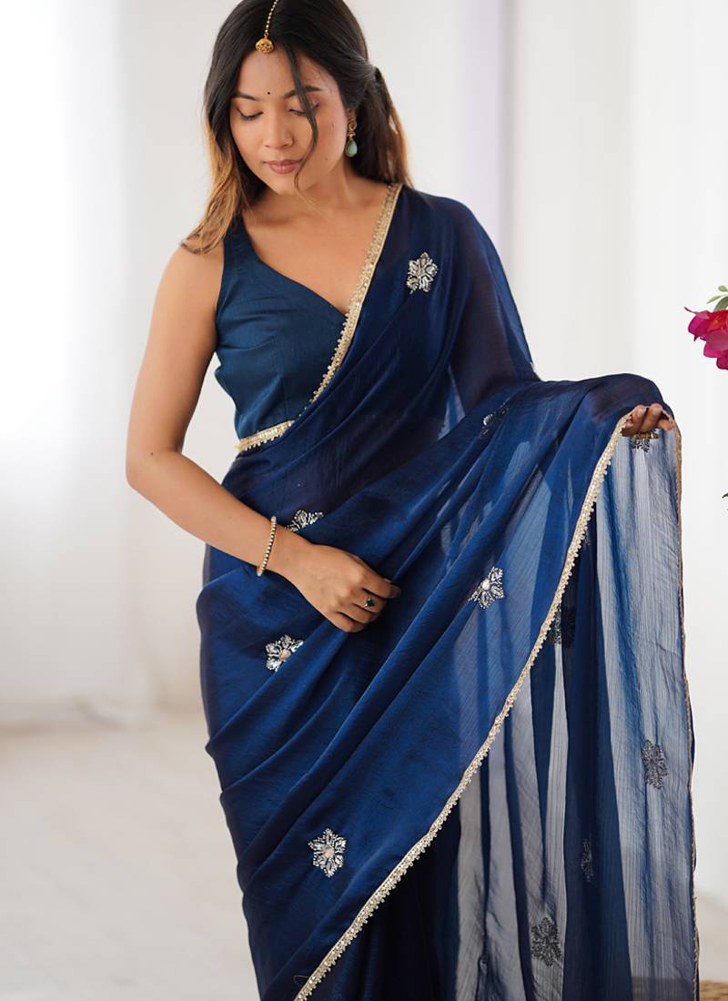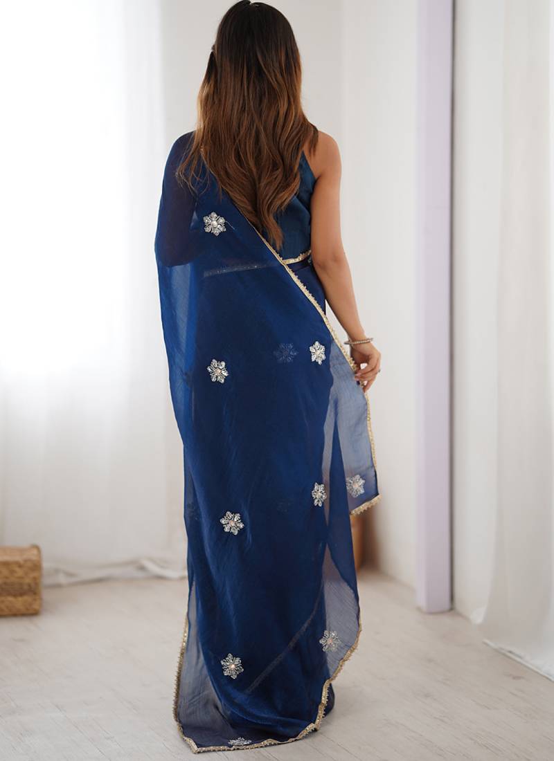 | Product Name | Blue Fandy Silk Blend Moti & Val Sequence Designer Saree | |