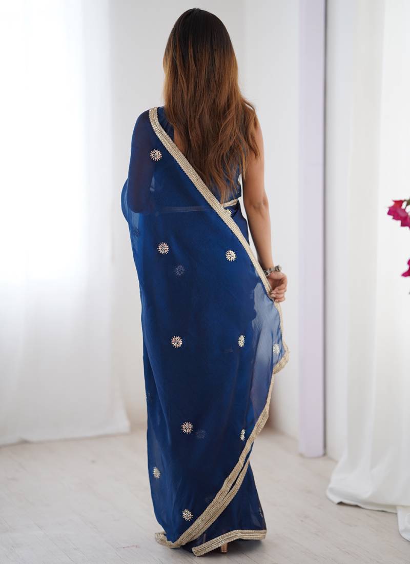 Blue fandy silk blend moti & val sequence designer saree