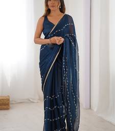 Blue smooth sitara fabric moti & val sequence designer saree