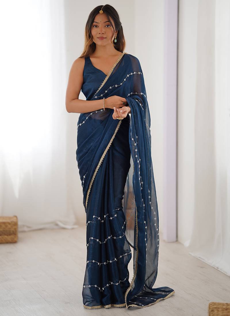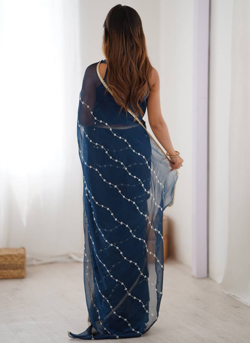 | Product Name | Blue Smooth Sitara Fabric Moti & Val Sequence Designer Saree | |
