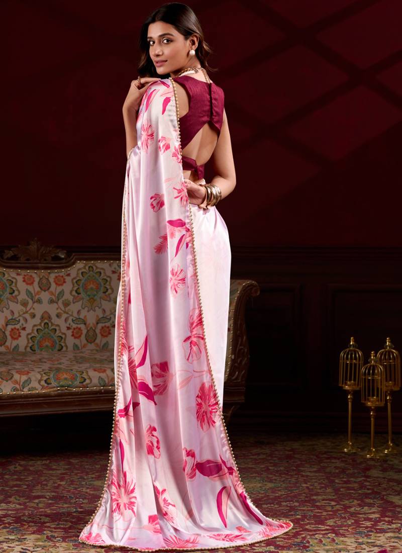 | Product Name | Light Pink Satin Silk Blend Digital Printed Pearl Lace Border Work Saree | |