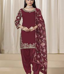 Maroon roman silk embroidered salwar suit for festival semi stitched