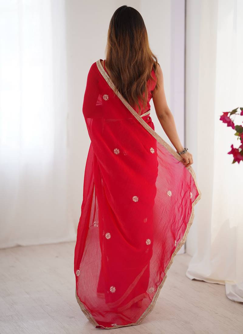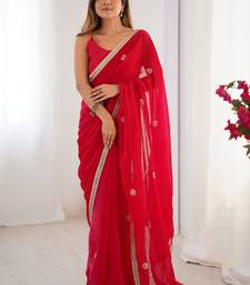 Red fandy silk blend moti & val sequence designer saree