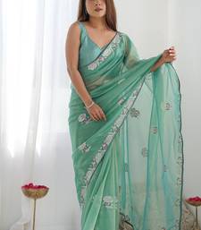 | • | Saree | : | Color- Turquoise / Fabric- Organza |
