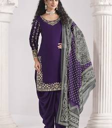 Violet roman silk mirror work patiala suit semi stitched